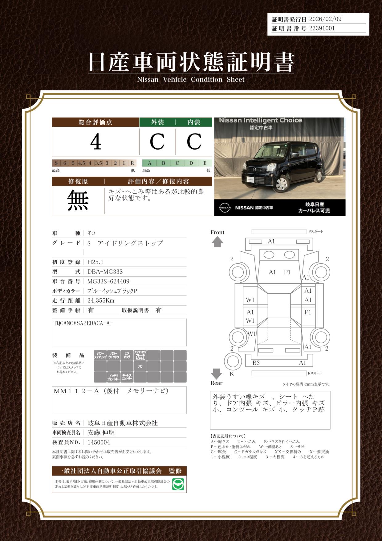 現状車検切れの状態ですが、ご成約時に新しく車検を実施します。車検費用は車両価格に含まれています。