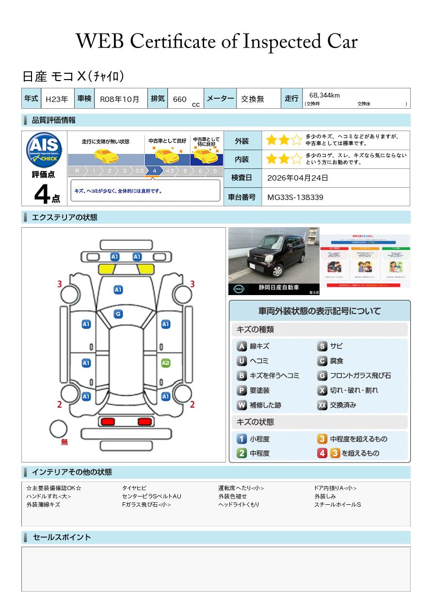 モコ 660cc 660 X インテリジェントキー ドラレコ ETC付