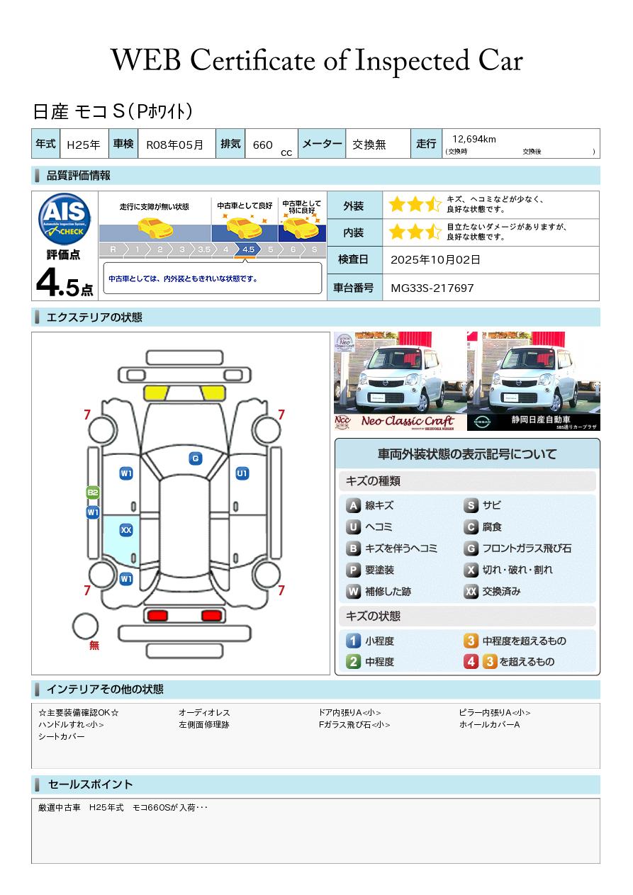 厳選中古車 H25年式 モコ660Sが入荷・・・純正ドライブレコーダー リモコンキー オーディオレス