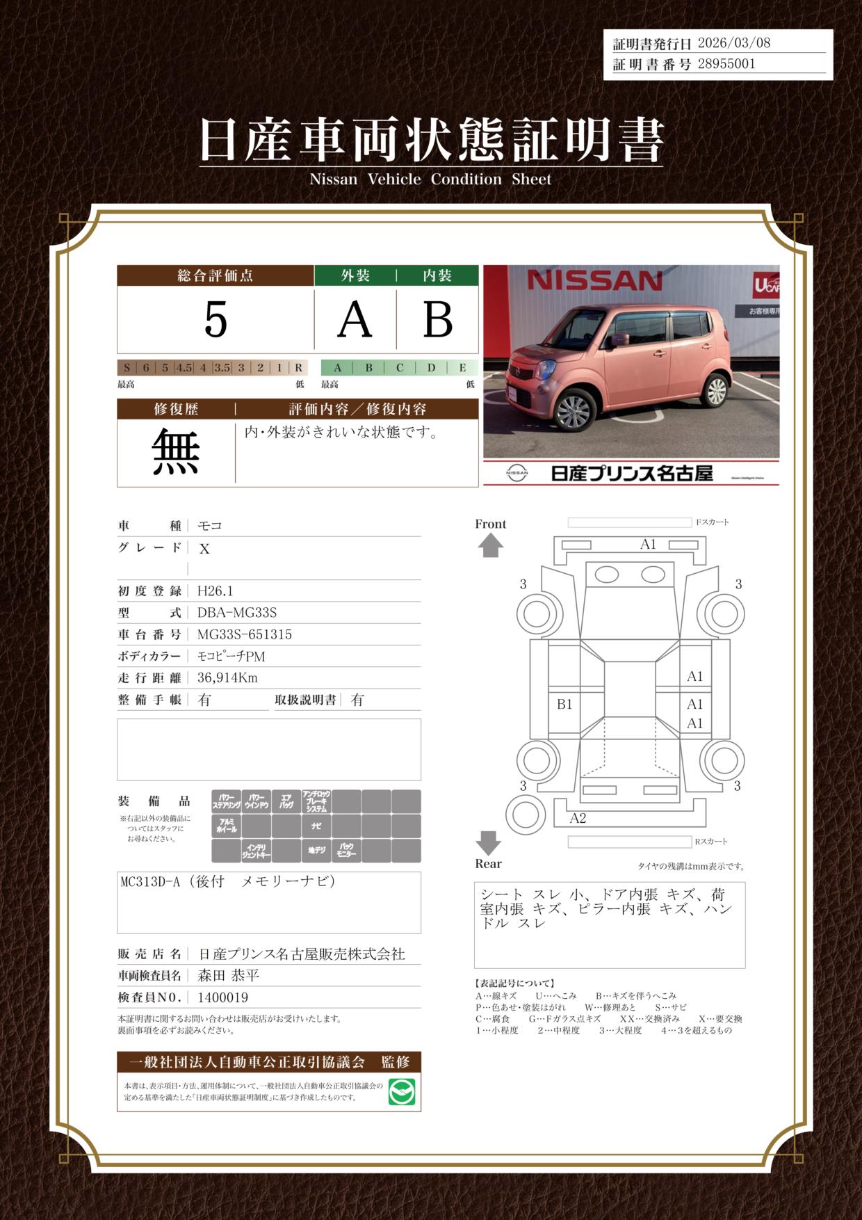 現状車検切れの状態ですが、ご成約時に新しく車検を実施します。車検費用は車両価格に含まれています。