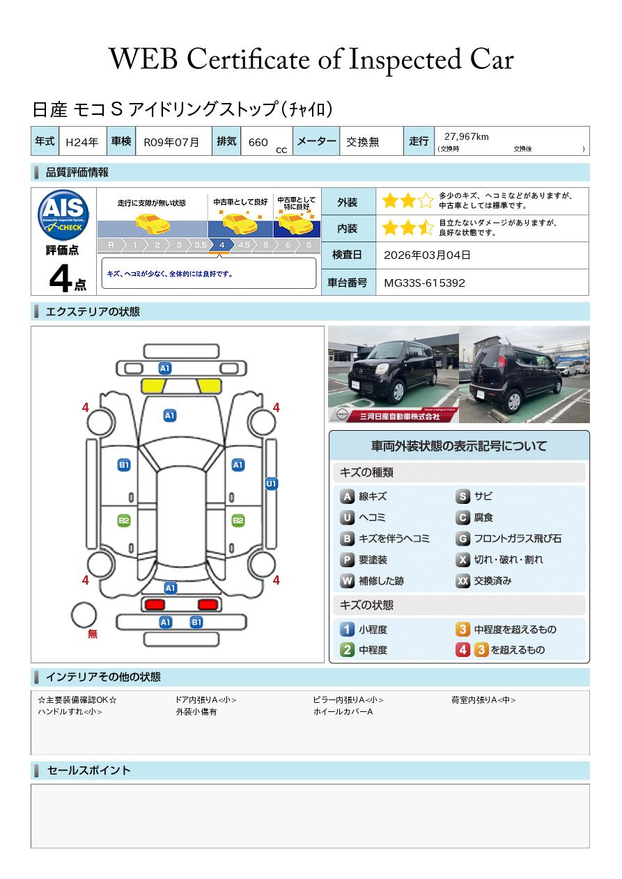 モコ660 S アイドリングストップ スマートキー