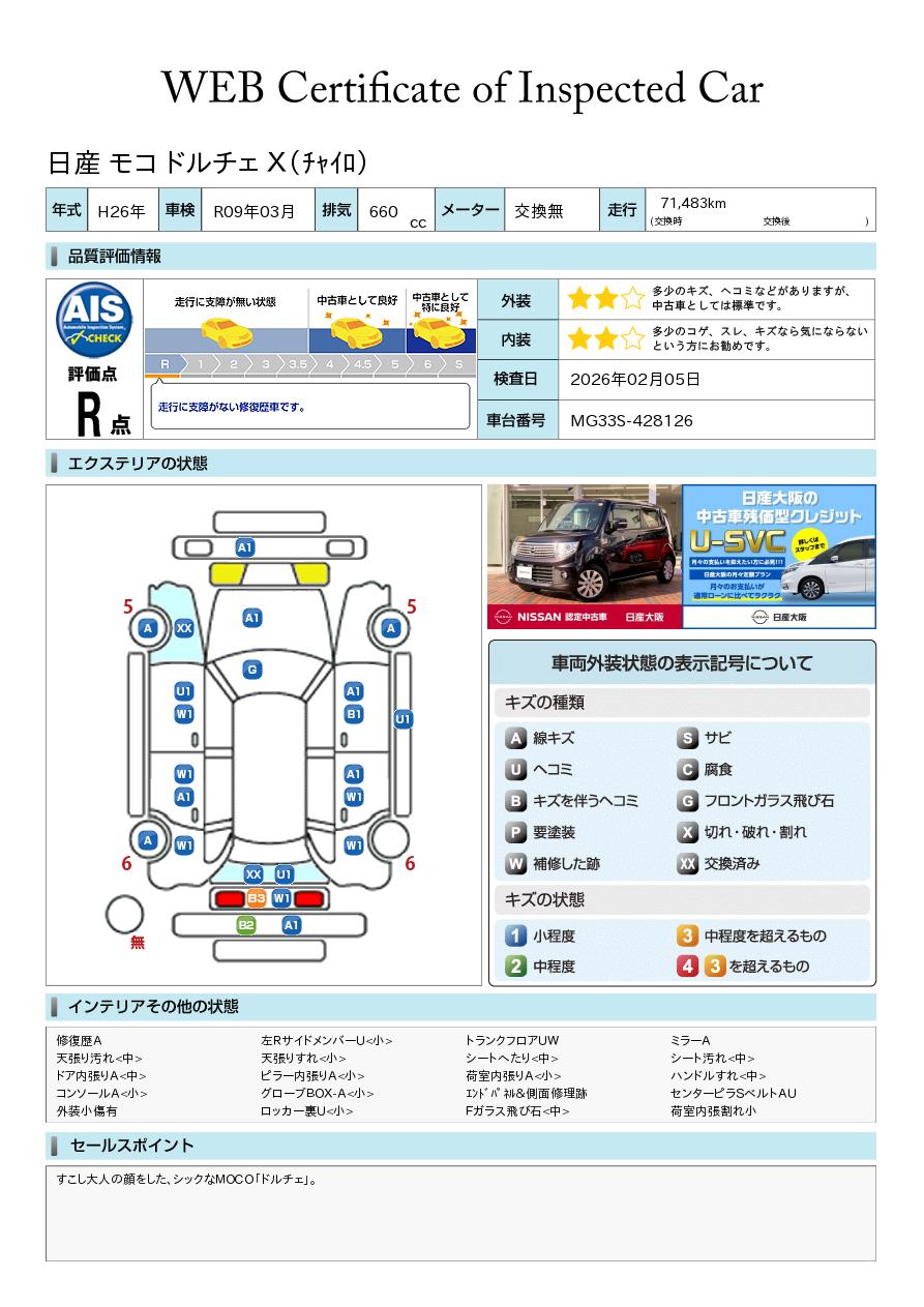 決算!修復歴有りです。すこし大人の顔をした、シックなモコ「ドルチェ」アイドリングストップ☆運転席助手席エアバック☆HIDヘッドライト☆ドライブレコーダー前後(社外品)