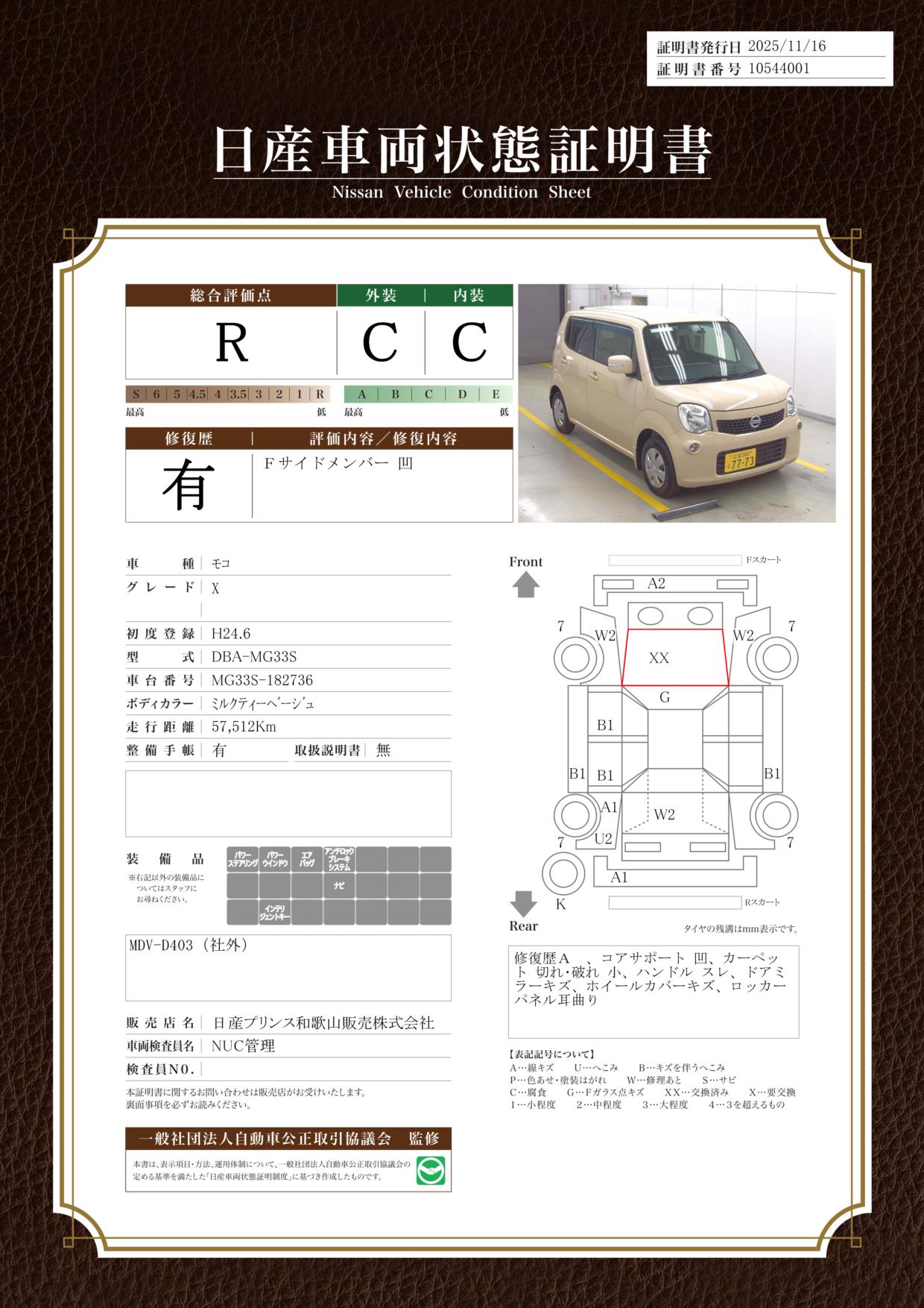 現状車検切れの状態であり、車検費用は車両価格とは別でご負担いただく必要があります。