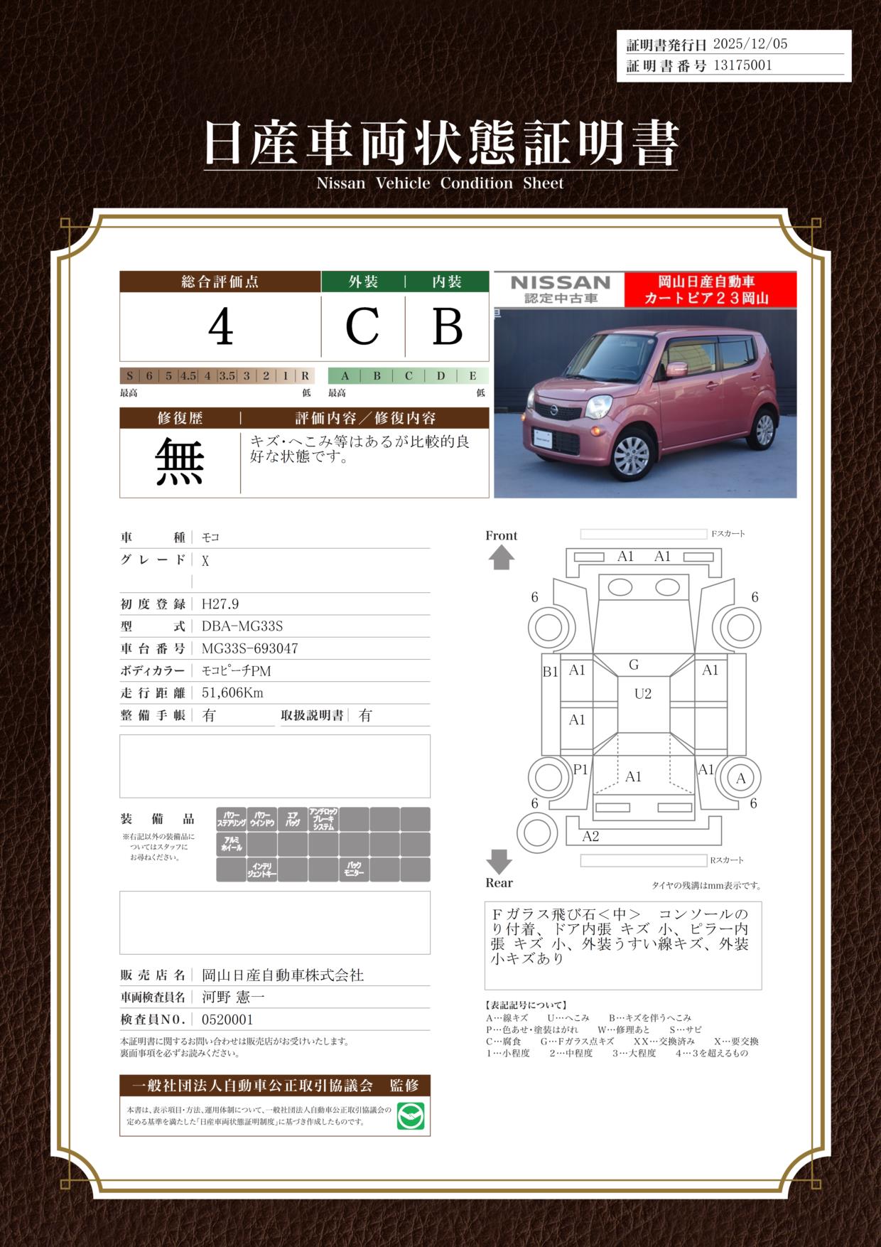 モコ 660cc 660 X 純正オーディオ&バックカメラ