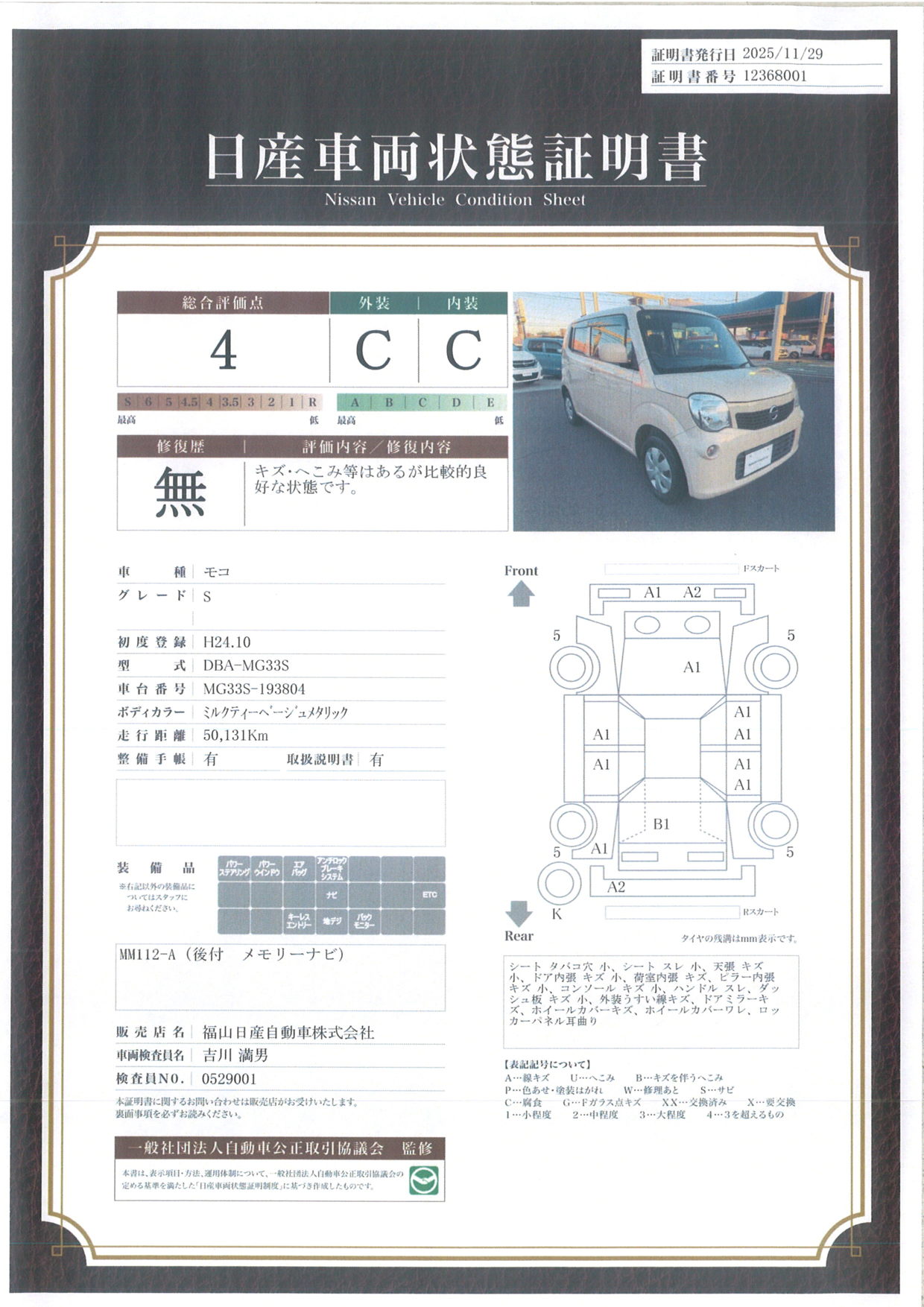 モコ 660cc 660 S ナビバックカメラーキーレスキー