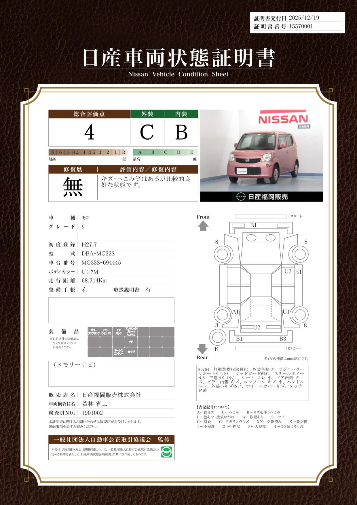 評価機関 : 日産車両状態証明