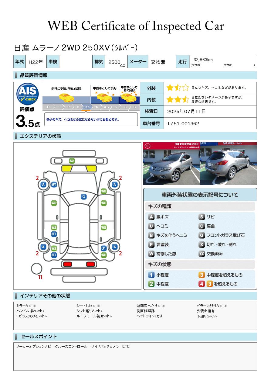 ムラーノ 2500cc 2.5 250XV メーカーナビ 本革シート サンルーフ