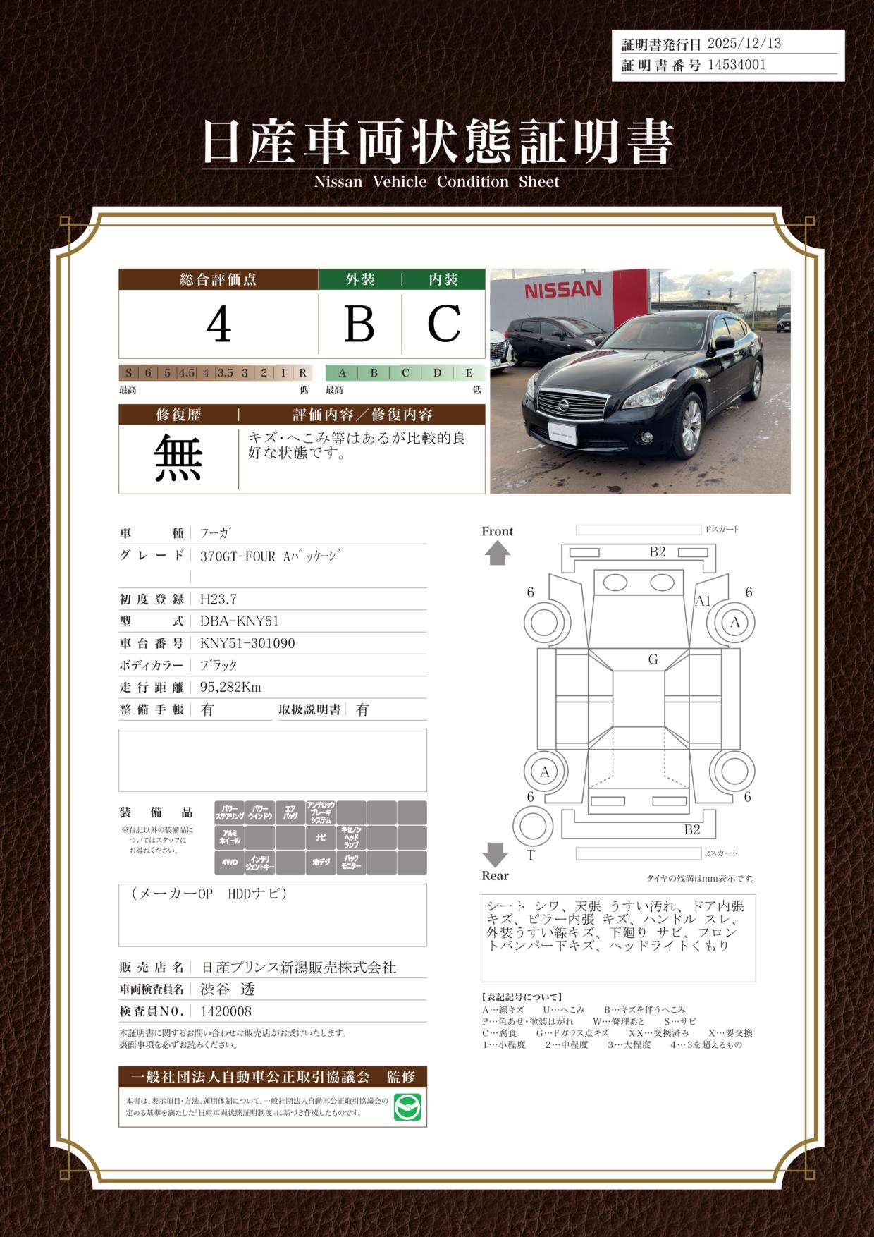 評価機関 : 日産車両状態証明