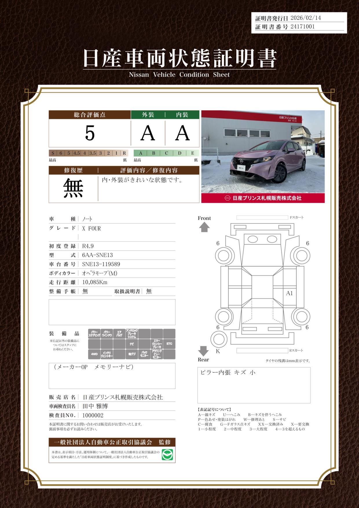 「車両状態証明書」は、査定協会監修のプロの検査員が公正かつ確かな基準で検査した”安心の証”です。