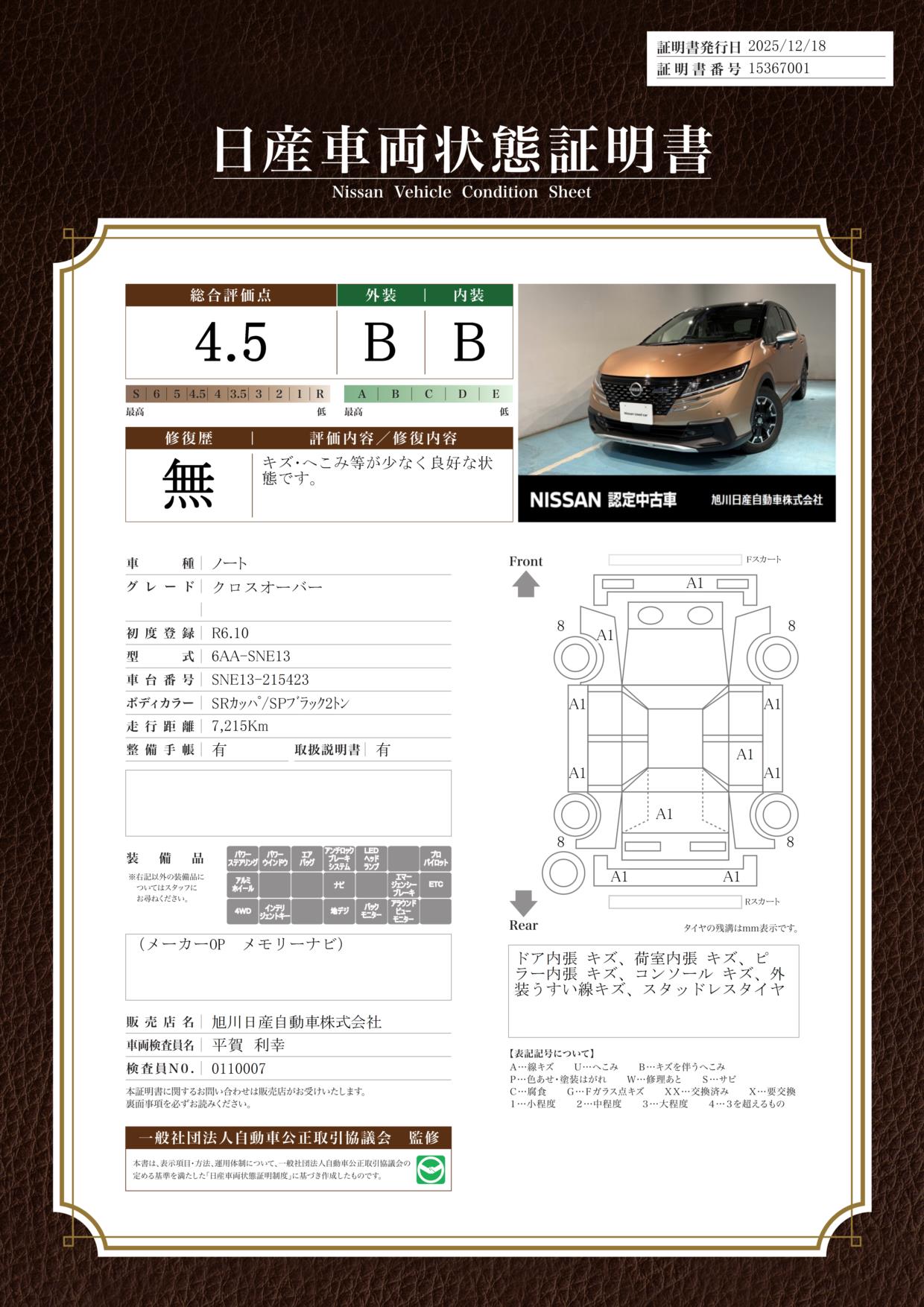 現状括弧書き内の年月まで車検有効期限が残っていますが、ご成約時に新しく車検を取り直します。なお取り直しの費用は車両価格に含まれています。