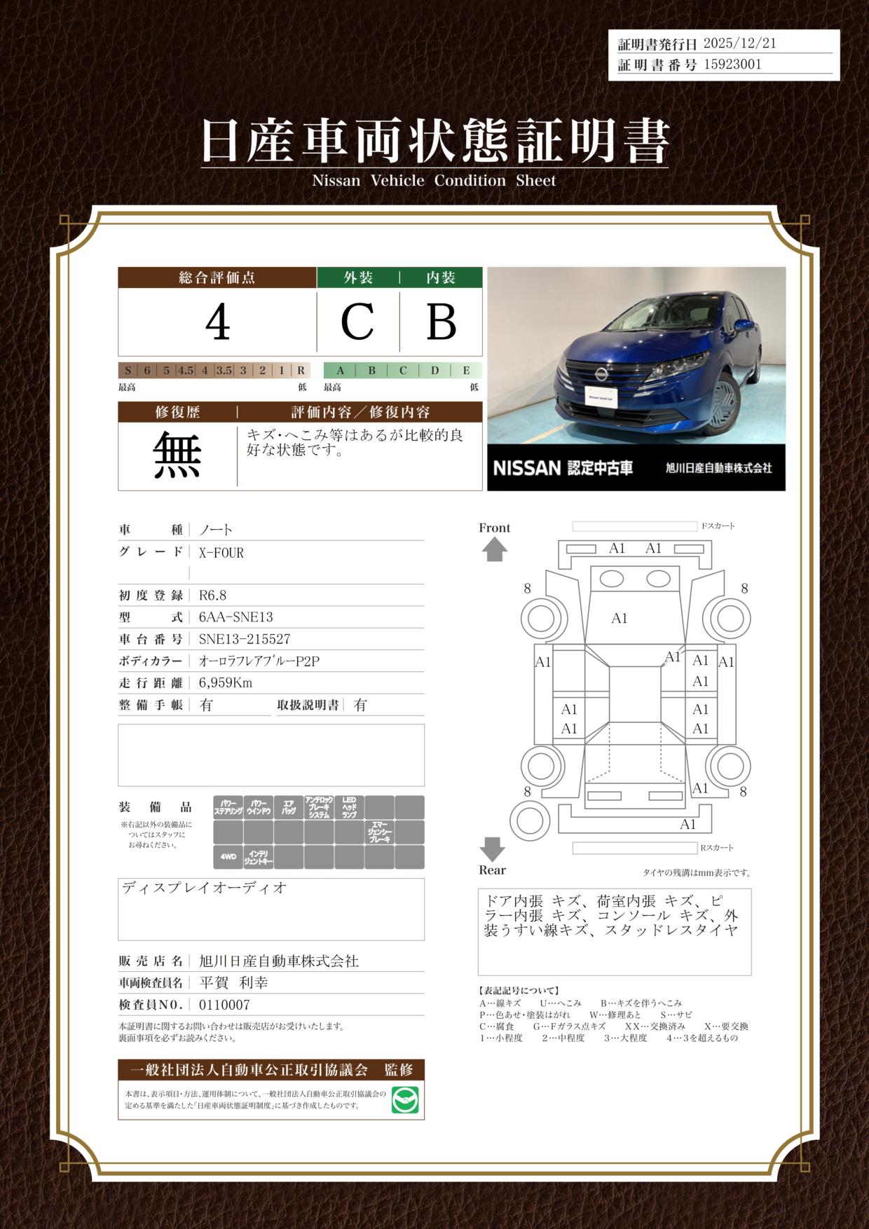 ノート 1200cc 1.2 X FOUR 4WD アダブティブLEDヘッドライトシステム