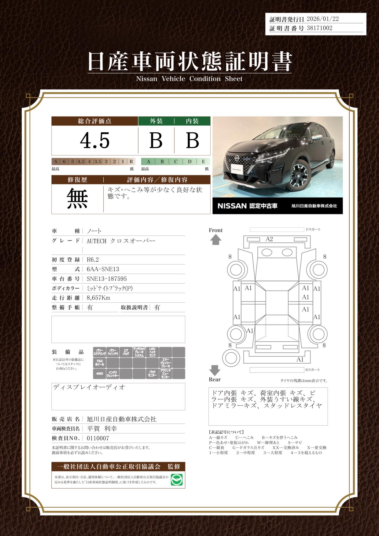 現状括弧書き内の年月まで車検有効期限が残っていますが、ご成約時に新しく車検を取り直します。なお取り直しの費用は車両価格に含まれています。