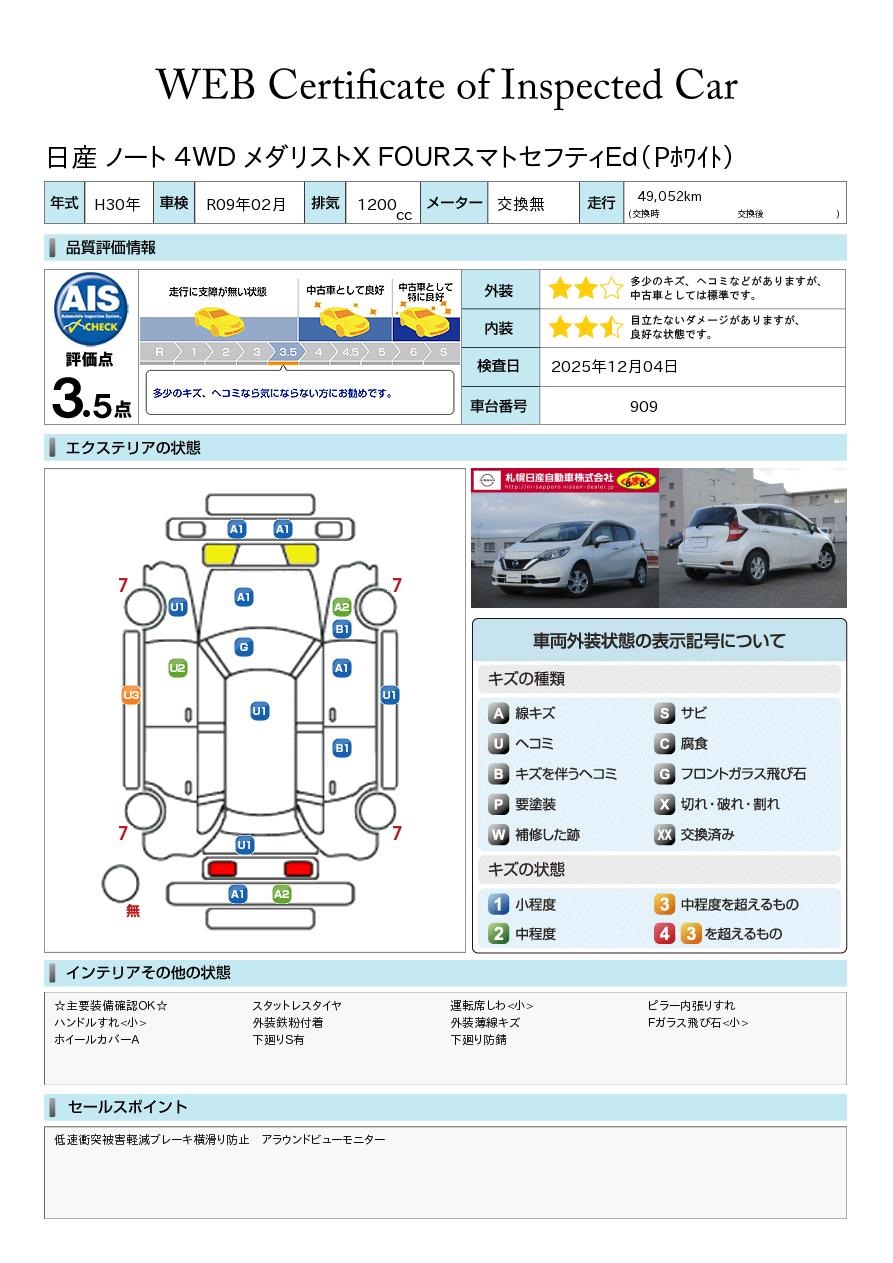 日産自動車認定の中古車販売店です。