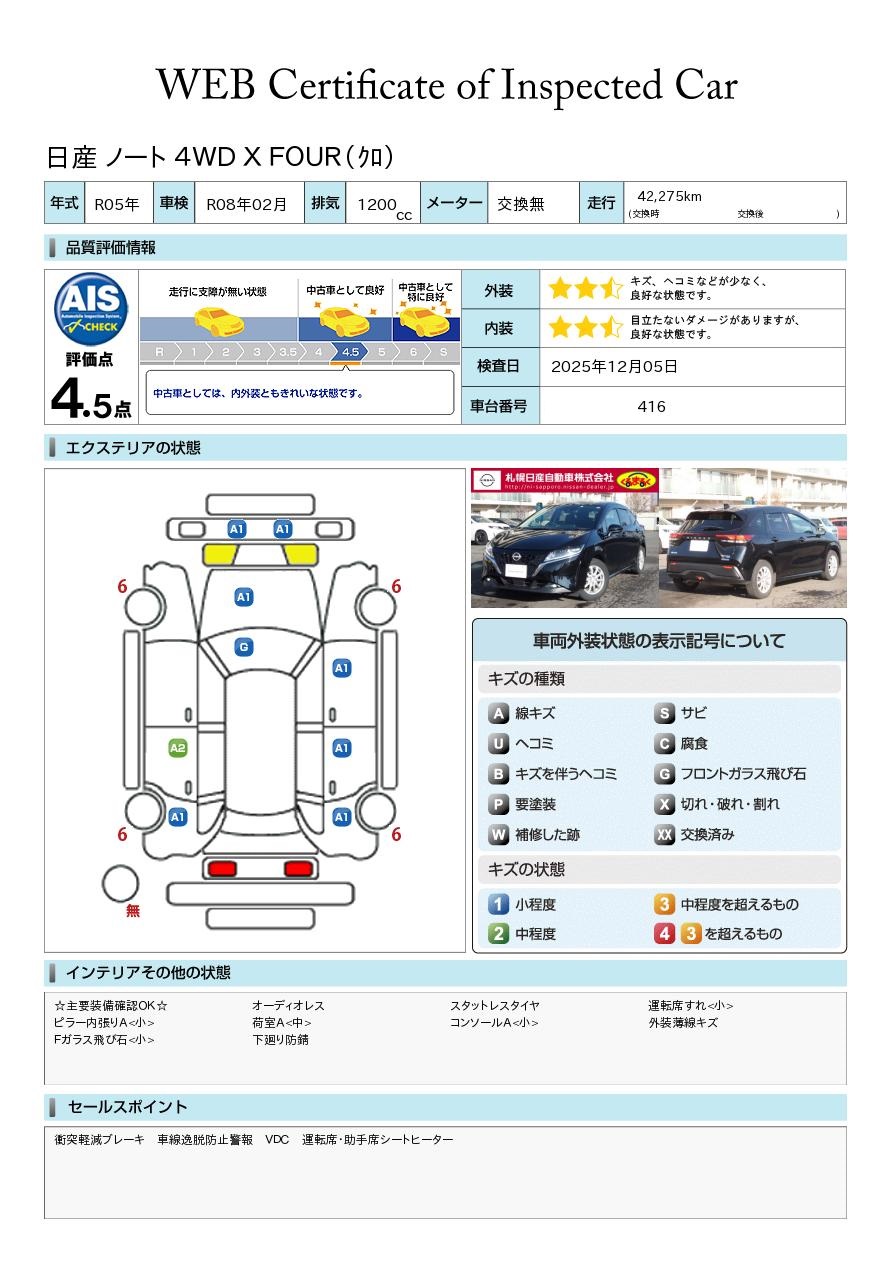 日産車はモチロンのこと 他メーカーでも軽自動車からミニバンまで幅広く展示中! 「くるまるく」店の中でもスケールの大きい店舗ですので、在庫も豊富に常時40台~60台展示中! AIS評価書付車両(第三者評価書)も多数ございますので、ご安心ください♪ 安心の日産「ワイド保証」や「自社ピット」完備! スタッフ一同お待ち申し上げております^^ 全車走行メーター管理システム導入☆(日本オートオークション協議会)