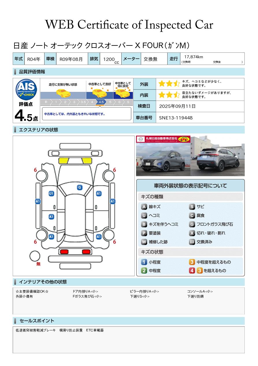令和4年 ノートAUTECH クロスオーバー4 ガンメタ 4WD 入荷いたしましたメモリーナビゲーション アラウンドビューモニター ドライブレコーダー前後 横滑り防止装置 ETC