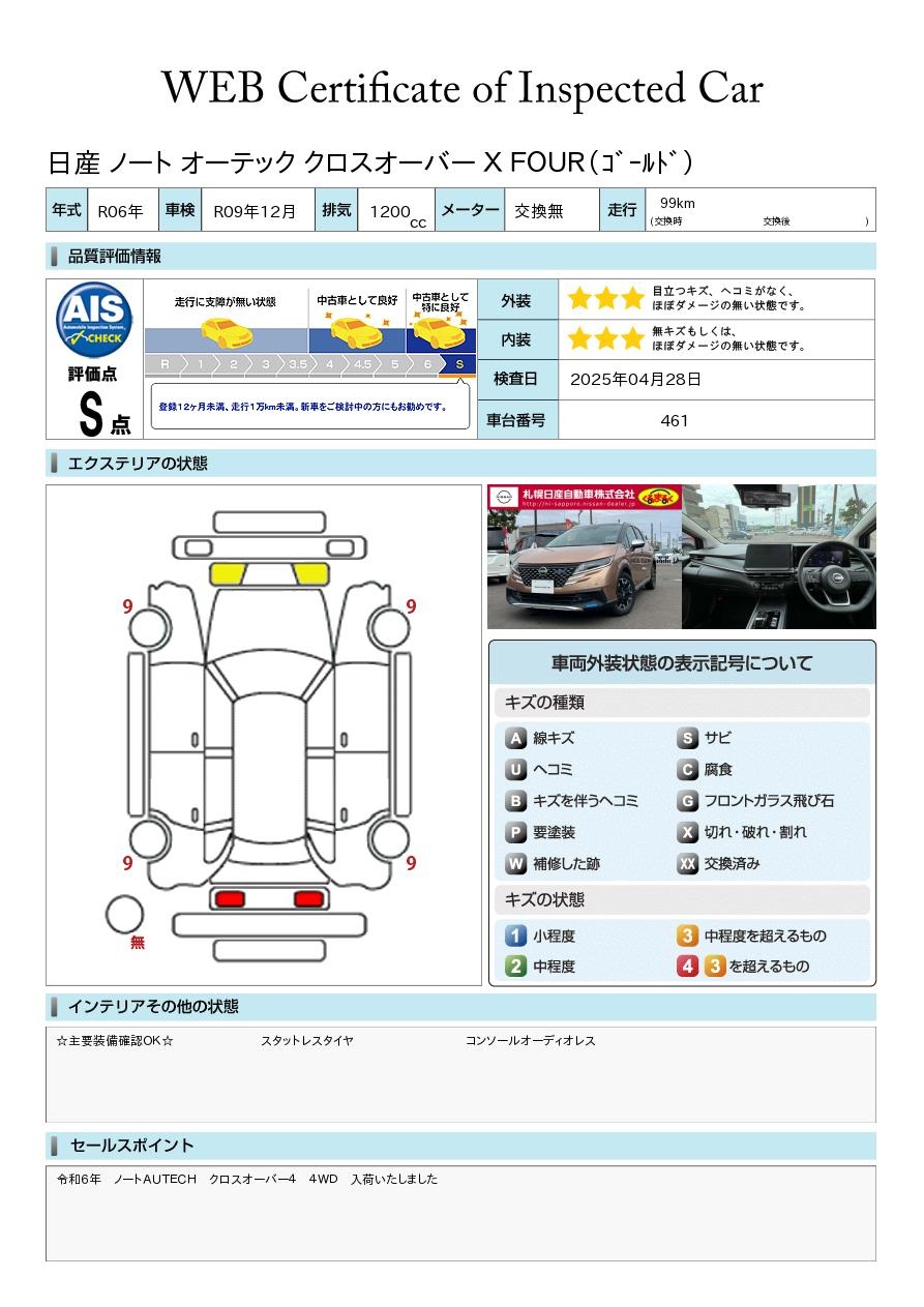 令和6年 ノートAUTECH クロスオーバー4 4WD 入荷いたしました当社試乗車UP! 全席シートヒーター ステアリングヒーター