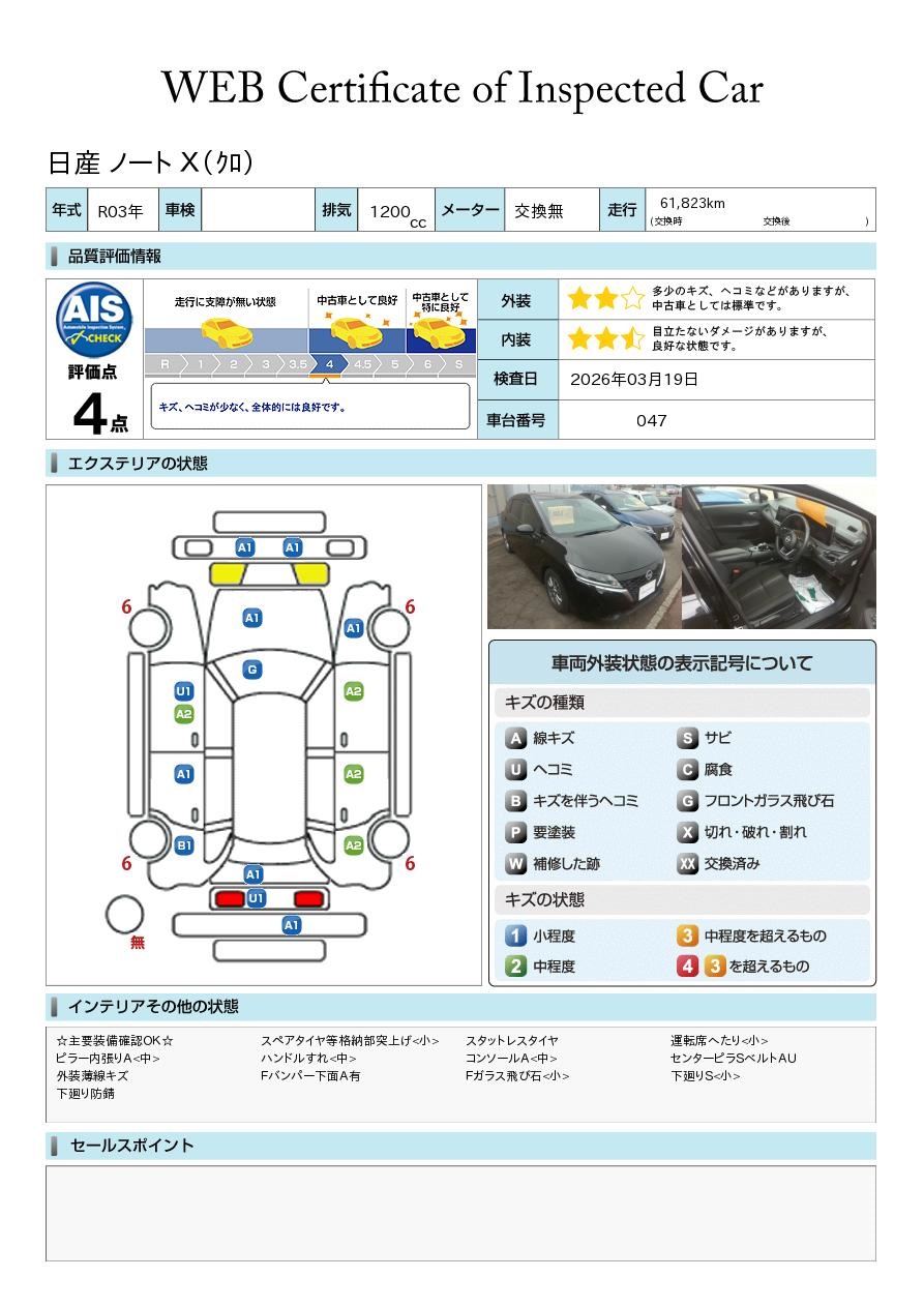 日産車は勿論のこと他メーカーでもコンパクト車からワゴン車まで幅広く展示中! 「くるまるく」店の中でもスケールの大きい店舗ですので、在庫数も豊富に常時90台~100台展示中! AIS評価書付車両(第三者評価書)も多数ございますので、ご安心ください♪ 安心の日産「ワイド保証」や「自社ピット」完備! スタッフ一同お待ち申し上げております^^ 全車走行メーター管理システム導入☆(日本オートオークション協議会)