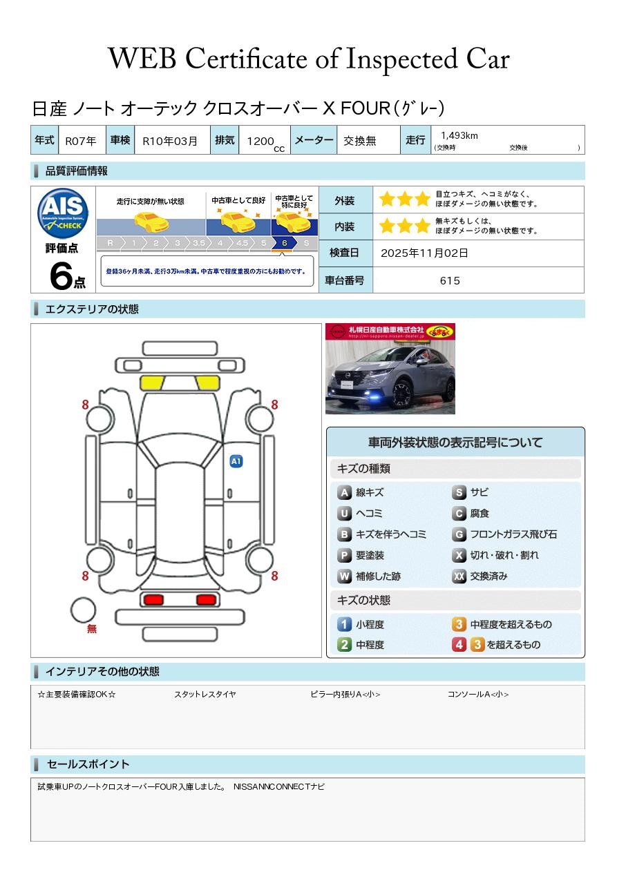 試乗車UPのノートクロスオーバーFOUR入庫しました。 NissanConnectナビアラウンドビューモニター スマートルームミラー 衝突被害軽減ブレーキETC2.0 LEDヘッドライト
