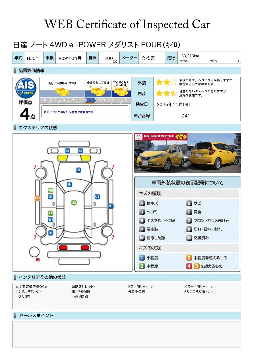 ノート 1200cc 1.2 e-POWER メダリスト FOUR 4WD