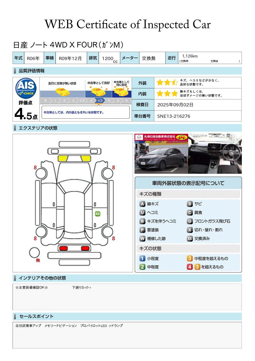 日産車は勿論のこと他メーカーでも軽自動車からミニバンまで幅広く展示中! 新車中古車併売店ですので、新車販売もOK! AIS評価書付車両(第三者評価書)も多数ございますので、ご安心ください♪ 安心の日産「ワイド保証」や「自社指定工場」完備! 岩見沢インターすぐ側です♪(札幌ジャンクションより約30分) スタッフ一同お待ち申し上げております^^ 全車走行メーター管理システム導入☆(日本オートオークション協議会)