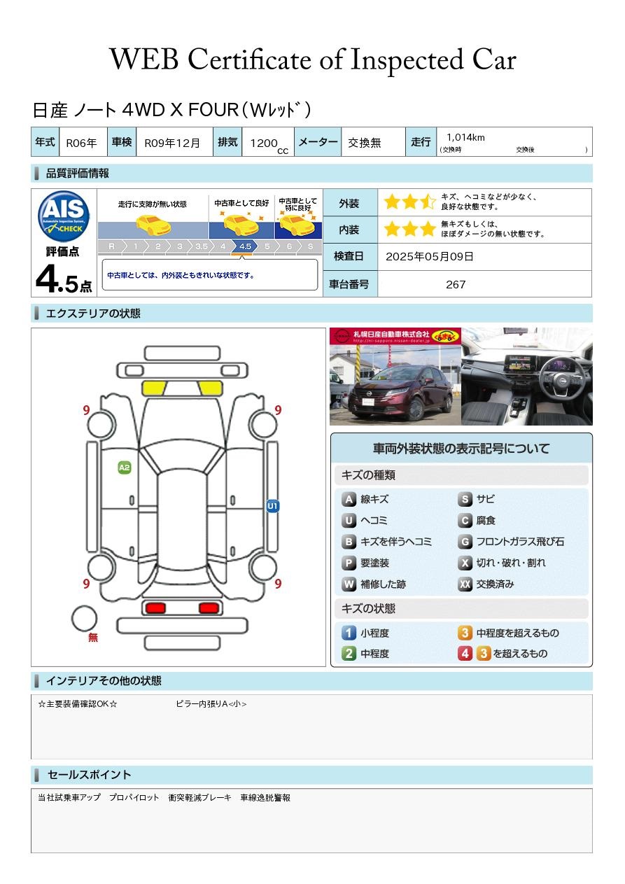 日産車は勿論のこと他メーカーでも軽自動車からミニバンまで幅広く展示中! 新車中古車併売店ですので、新車販売もOK! AIS評価書付車両(第三者評価書)も多数ございますので、ご安心ください♪ 安心の日産「ワイド保証」や「自社指定工場」完備! 岩見沢インターすぐ側です♪(札幌ジャンクションより約30分) スタッフ一同お待ち申し上げております^^ 全車走行メーター管理システム導入☆(日本オートオークション協議会)