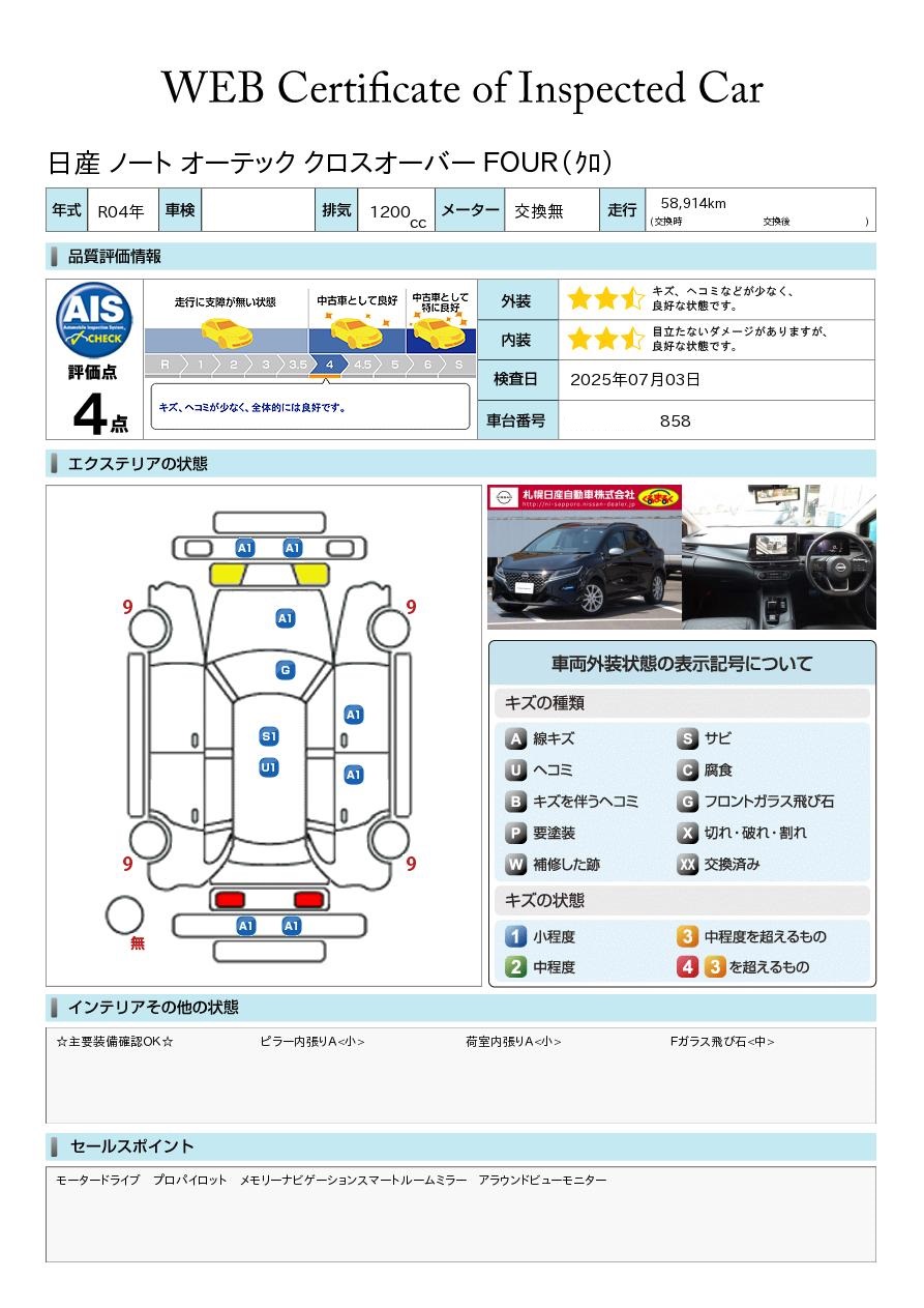 令和4年 ノートAUTECH クロスオーバー4 黒 4WD 入荷いたしました純正ナビゲーション アラウンドビューモニター ステアリングヒーター プロパイロット スマートミラー