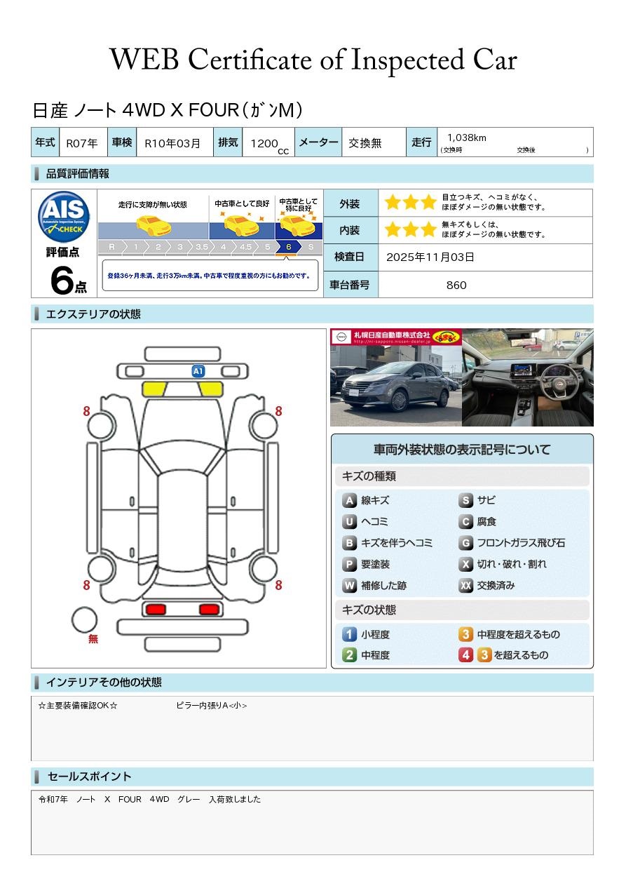 令和7年 ノート X FOUR 4WD グレー 入荷致しましたアラウンドビューモニター オートハイビーム ステアリングヒーター 車線逸脱防止支援システム