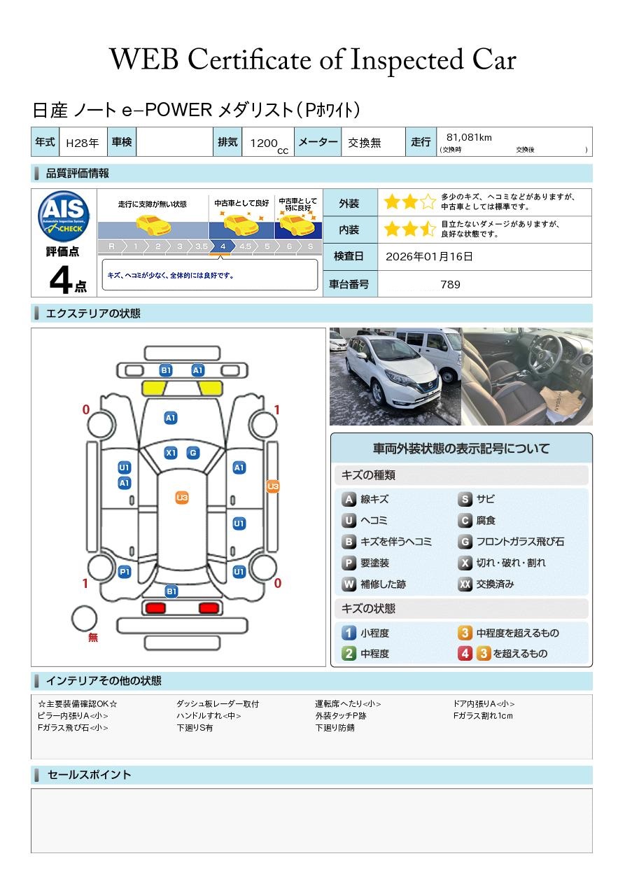 ノート 1200cc 1.2 AUTECH クロスオーバー FOUR 4WD 当社試乗車UP
