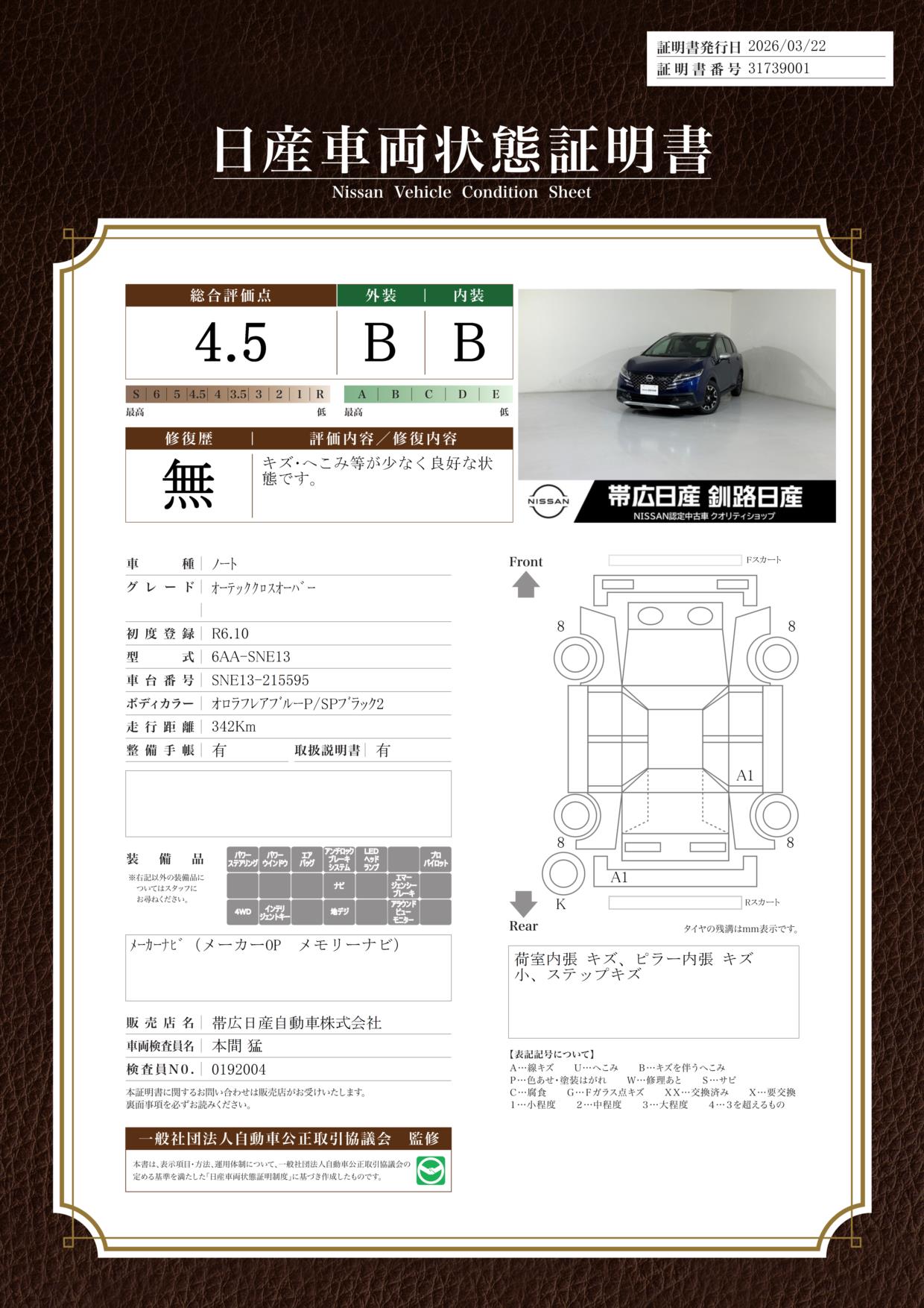 「車両状態証明書」は、査定協会監修のプロの検査員が公正かつ確かな基準で検査した”安心の証”です。