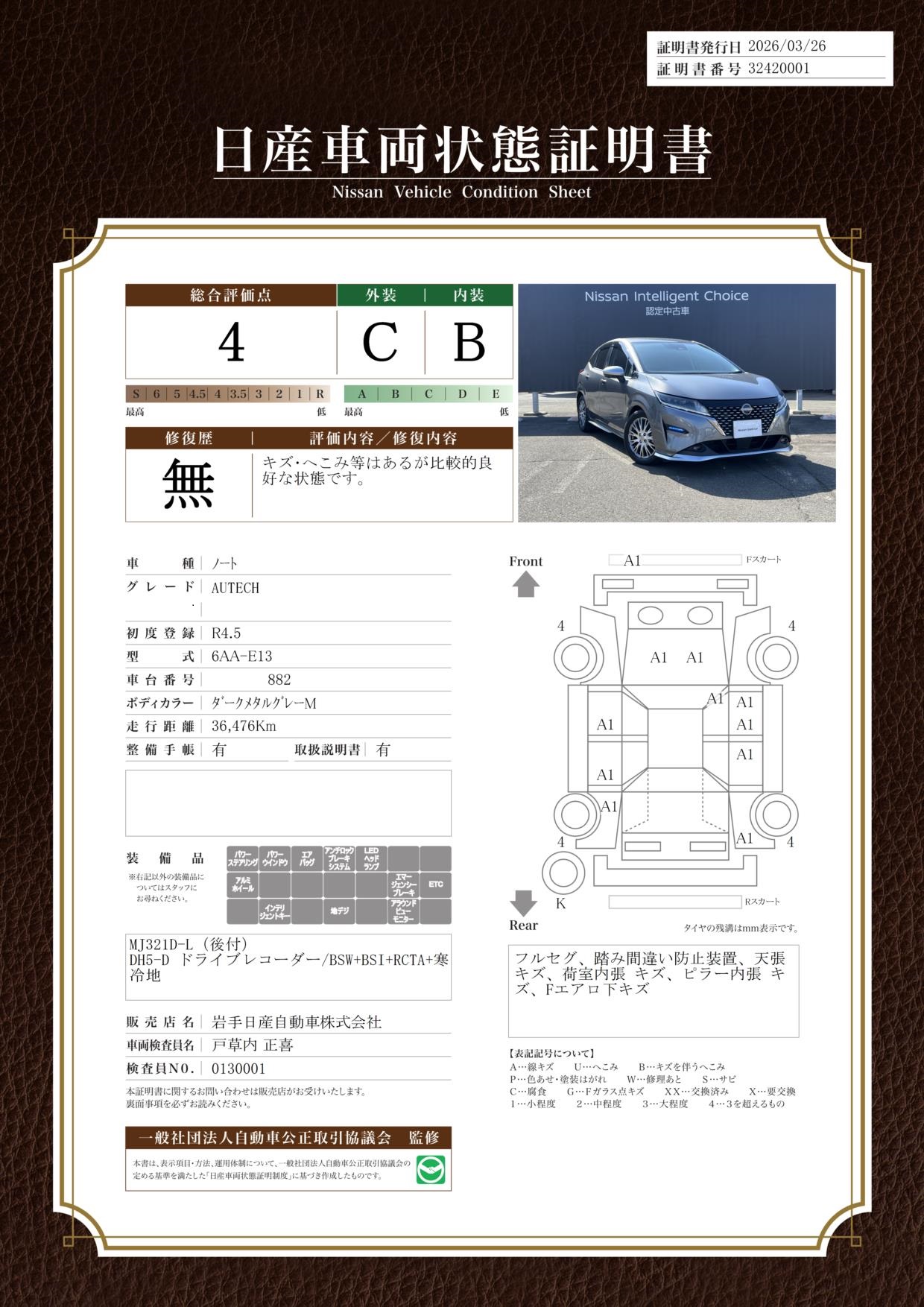 日産車両状態証明