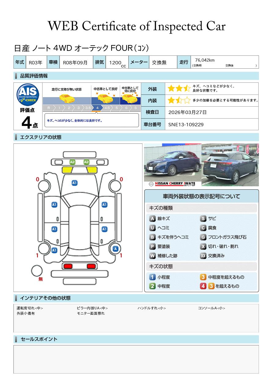 ノート 1200cc 1.2 X FOUR 4WD