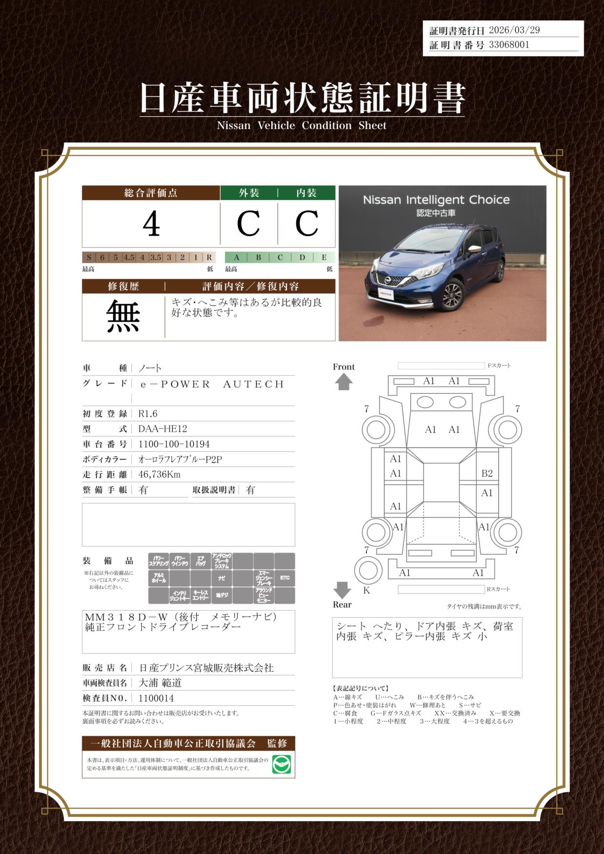 日産自動車認定の中古車販売店です。