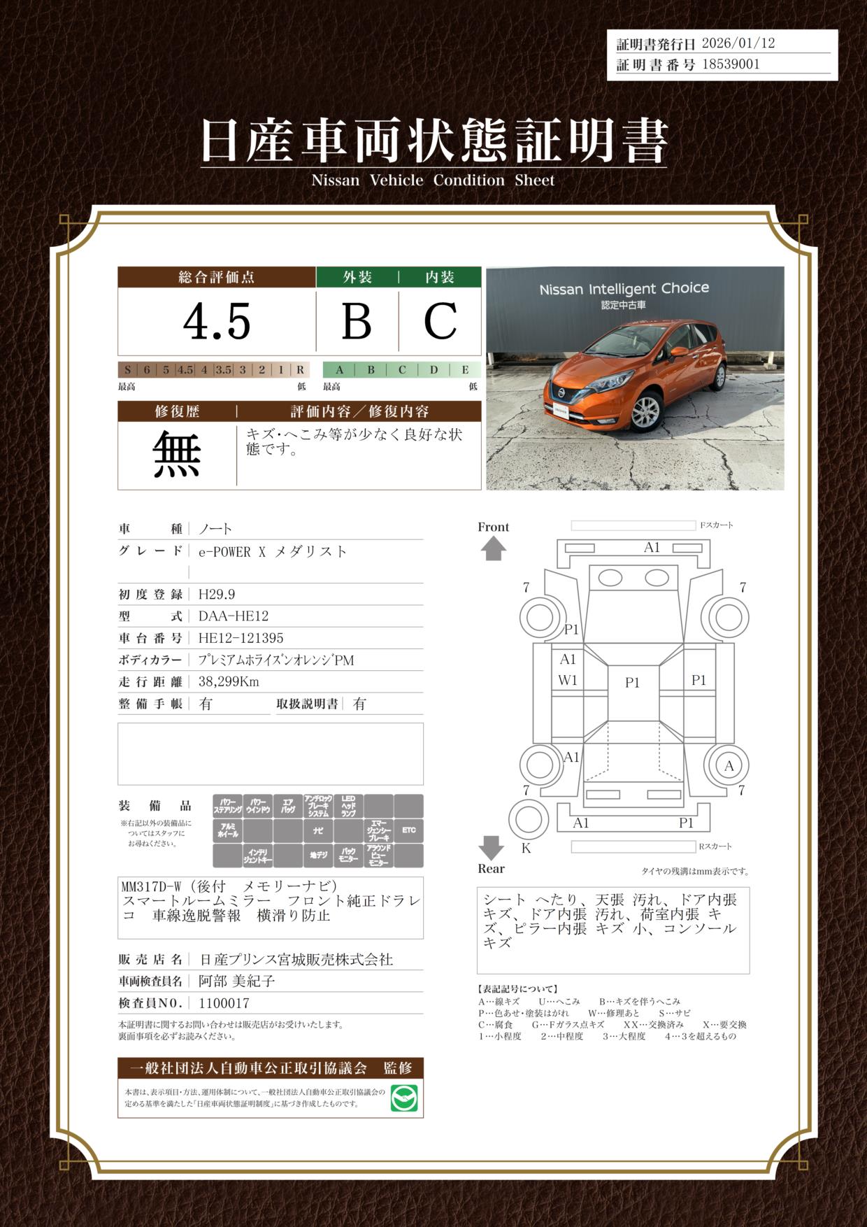 平成29年式のノートメダリストe-Powerの入荷です♪ノート上級グレードのメダリストです。ナビやドライブレコーダー ETC付きのお車です♪
