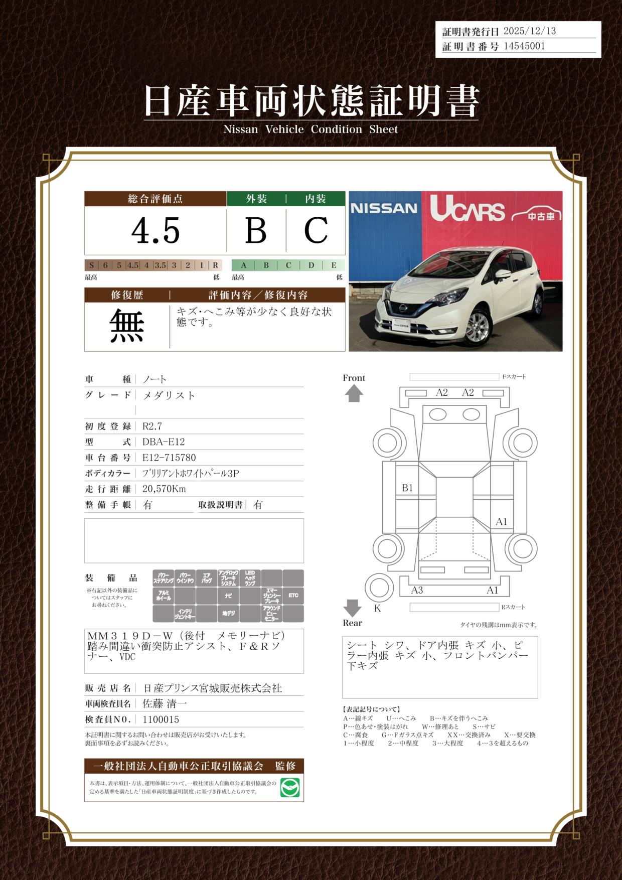 【全車保証整備付きです!どれでも安心してお選び頂けます!】ノート・メダリストです!アラウンドビューモニター、純正ドライブレコーダー付!映像はナビで見れます!