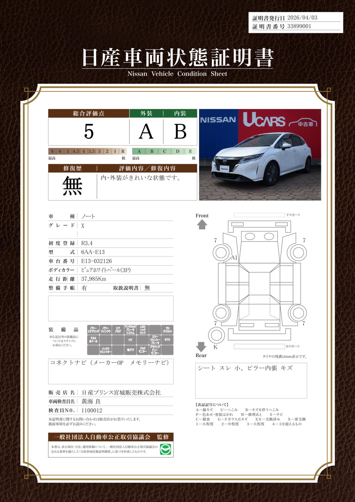 人気のパールホワイトノート入荷いたしました☆充実装備の1台です☆