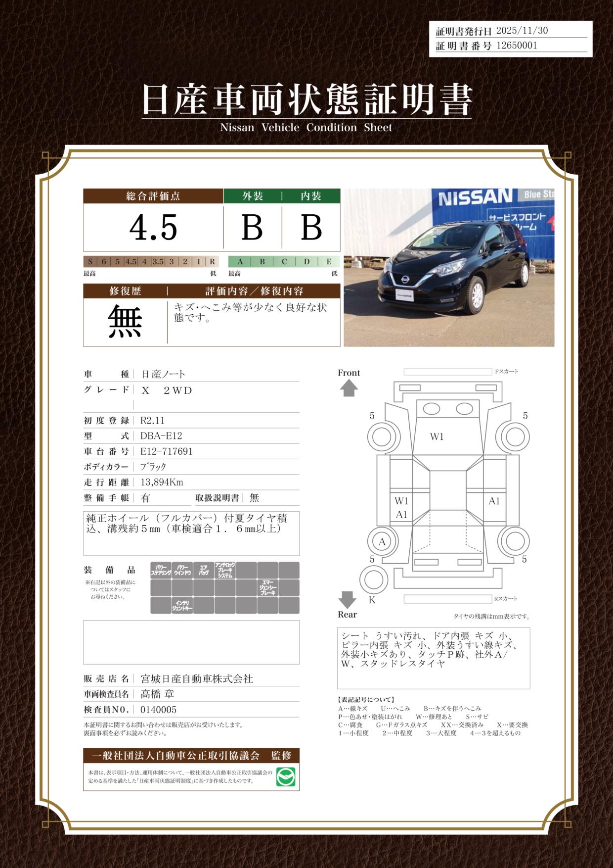 ノート 1200cc 1.2 X 日産認定1年保証(走行無制限) [メーカーOP: