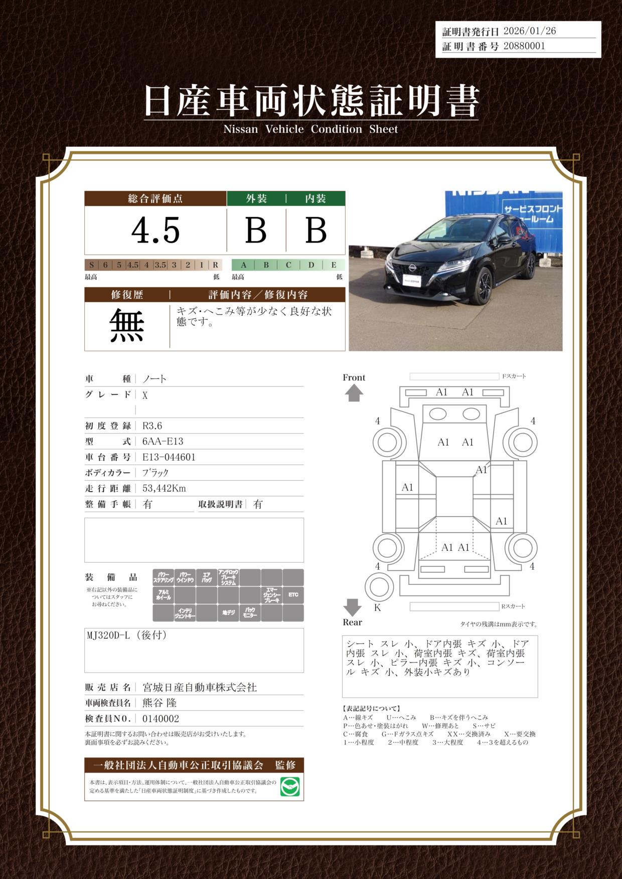 ●最大104項目の点検と、2年・1年・3ヵ月の保証がつきます。 ●クレジット払い可能、実質年率5.9%、頭金の有無、均等又はボーナス併用、60回まで。最短30分ほどで審査致します。 ●交通機関を利用しご来店の際は事前に電話でご相談頂ければJR仙石線の小鶴新田駅まで送迎致します。