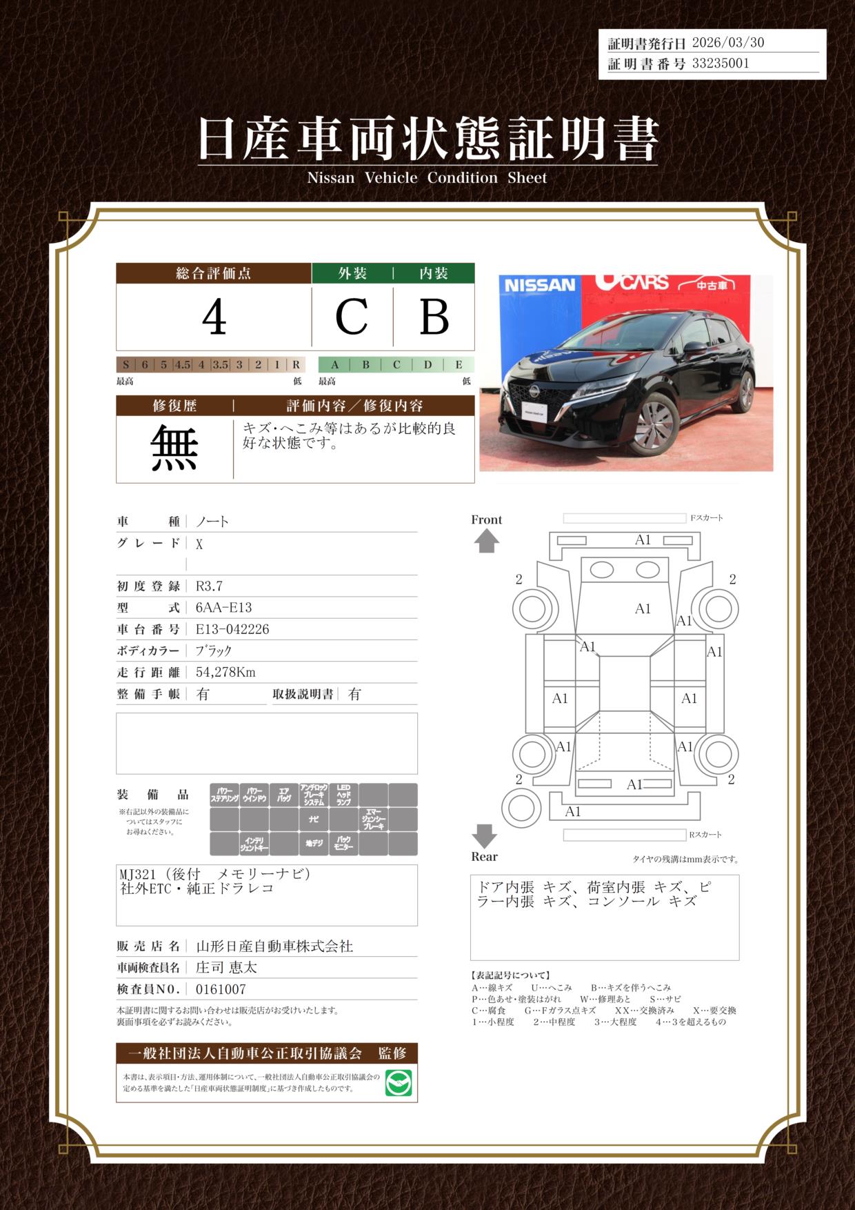 日産自動車認定の中古車販売店です。