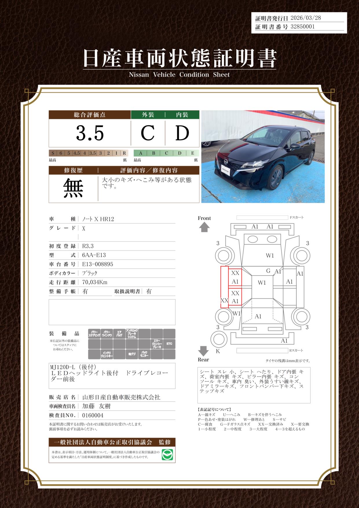 日産車両状態証明