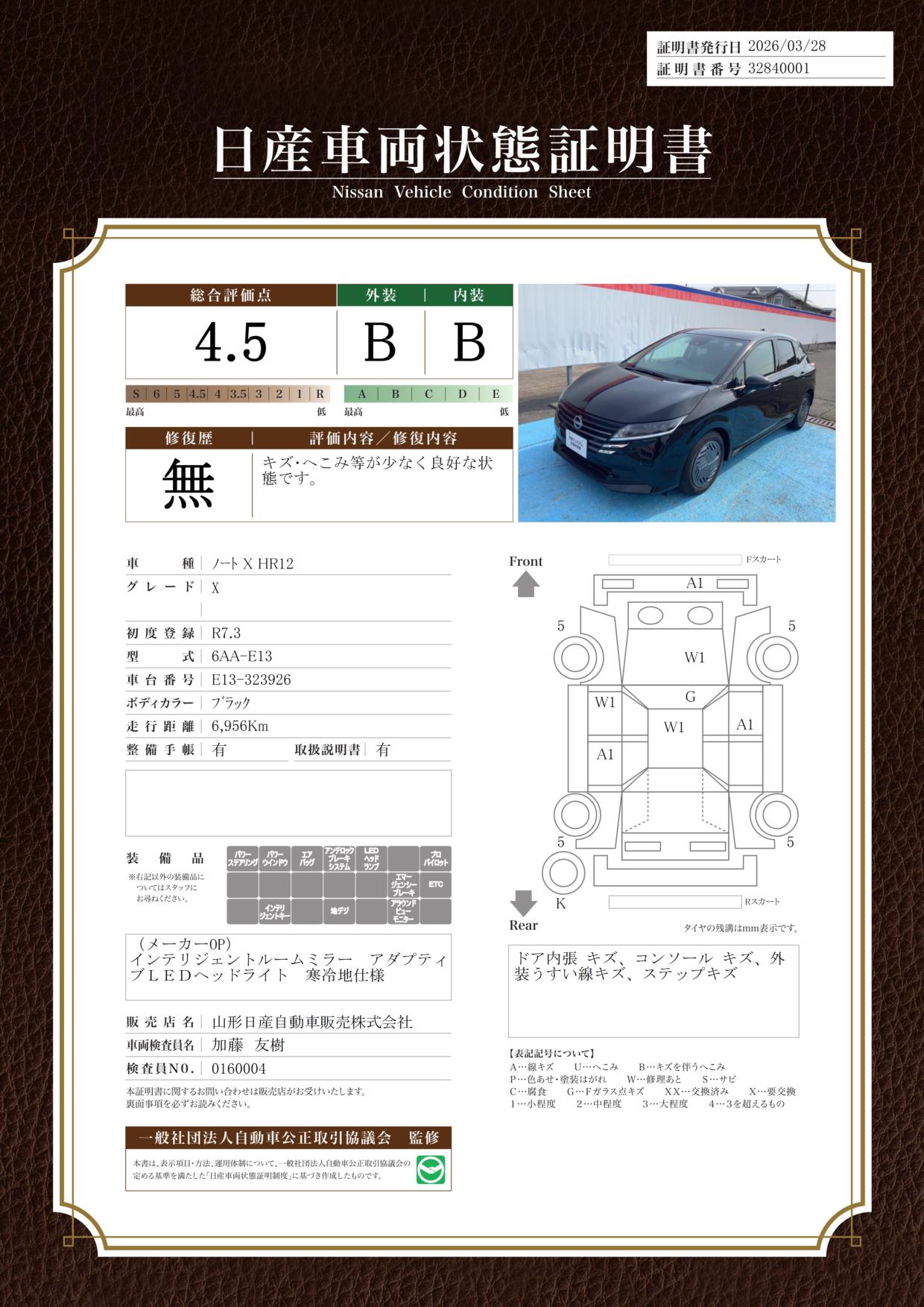 日産車両状態証明