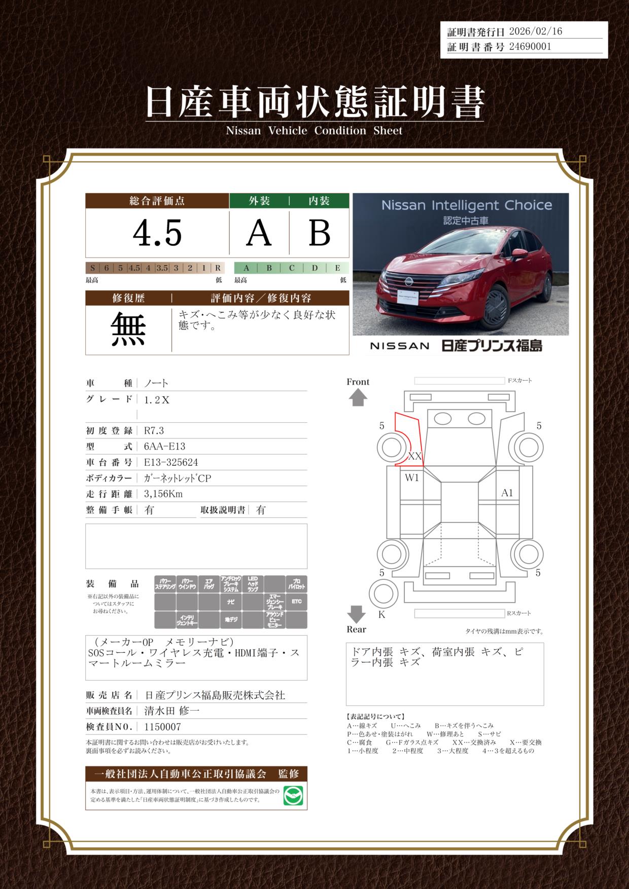 日産車両状態証明