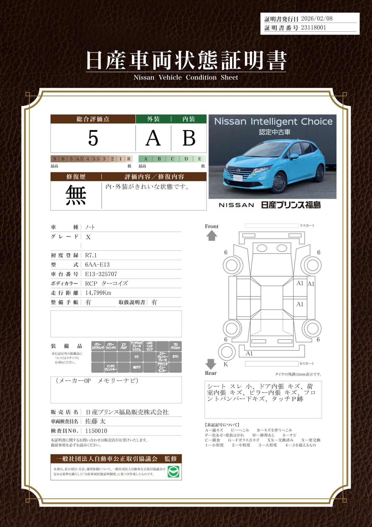 ノート 1200cc 1.2 X 試乗車 純正大画面ナビ ETC 全周囲カメラ
