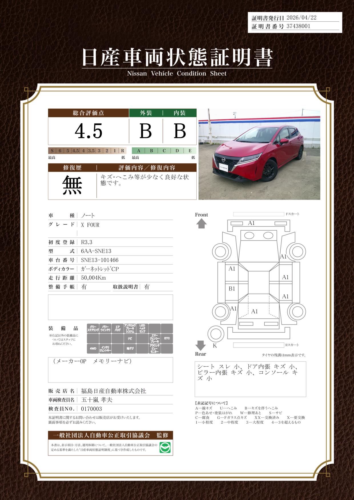 日産自動車認定の中古車販売店です。