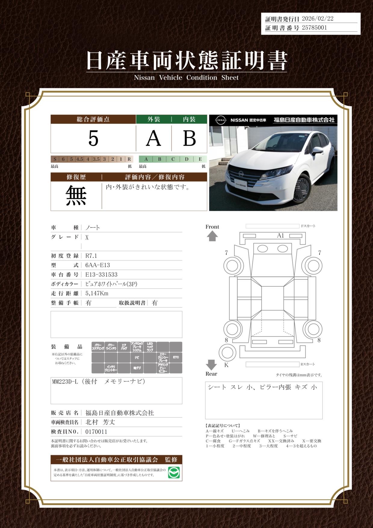 セーフティアシスト・FCW・LDW・BSW・RCTA・エンジンで発電してモーターで走るノートe-POWER・力強い電気での加速、颯爽と流れる景色をご体感下さい。