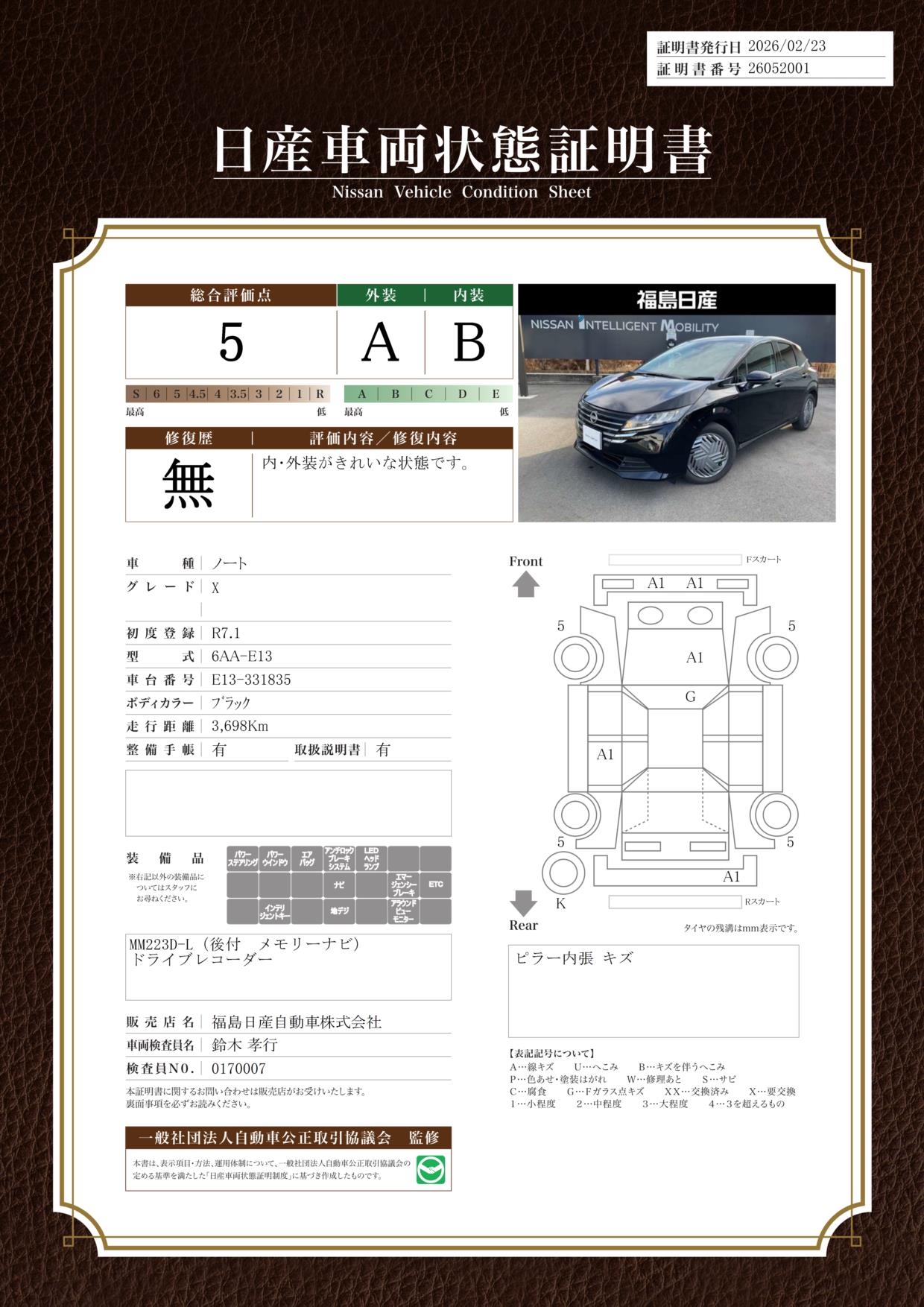 日産車両状態証明