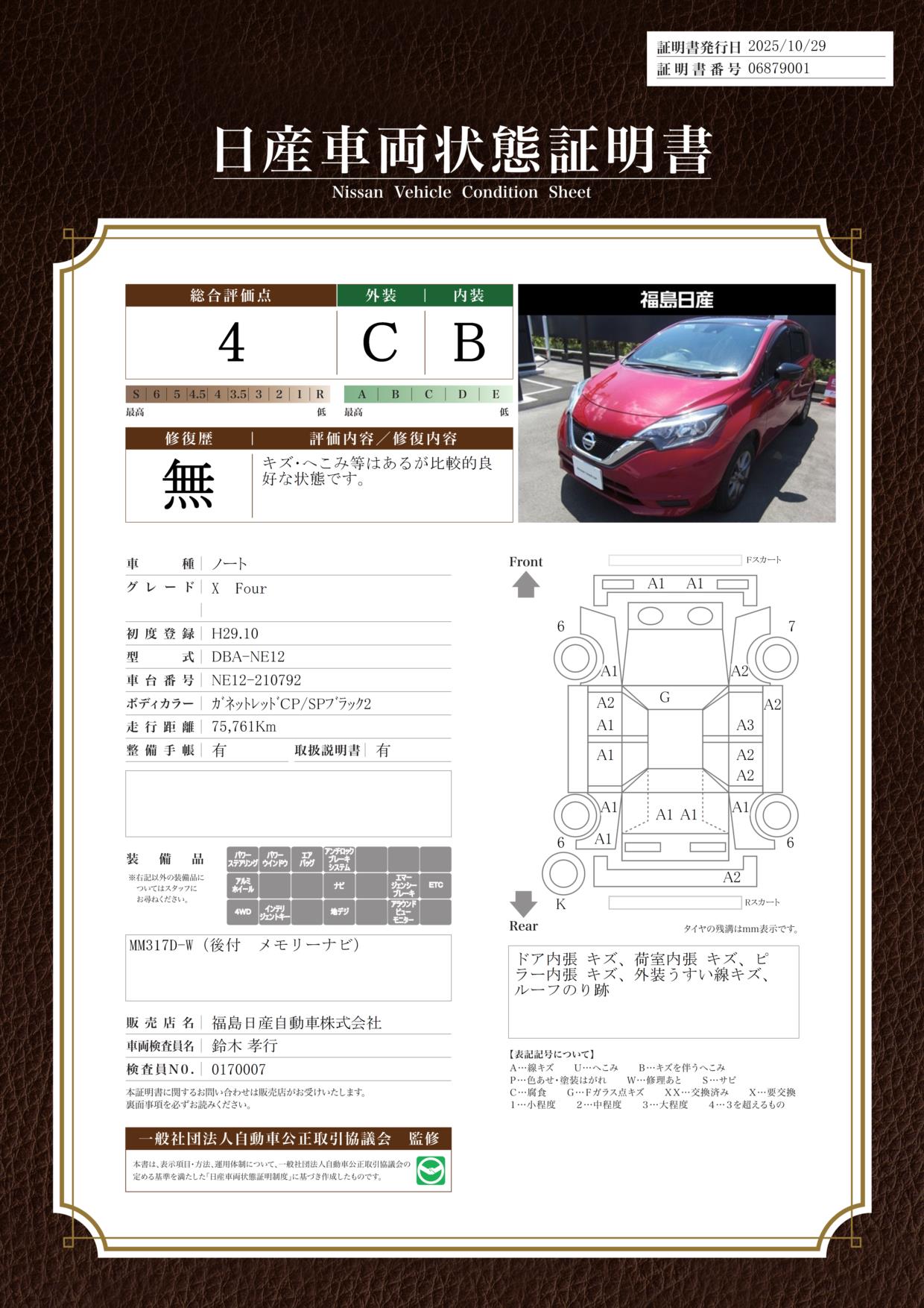 現状括弧書き内の年月まで車検有効期限が残っていますが、ご成約時に新しく車検を取り直します。なお取り直しの費用は車両価格に含まれています。