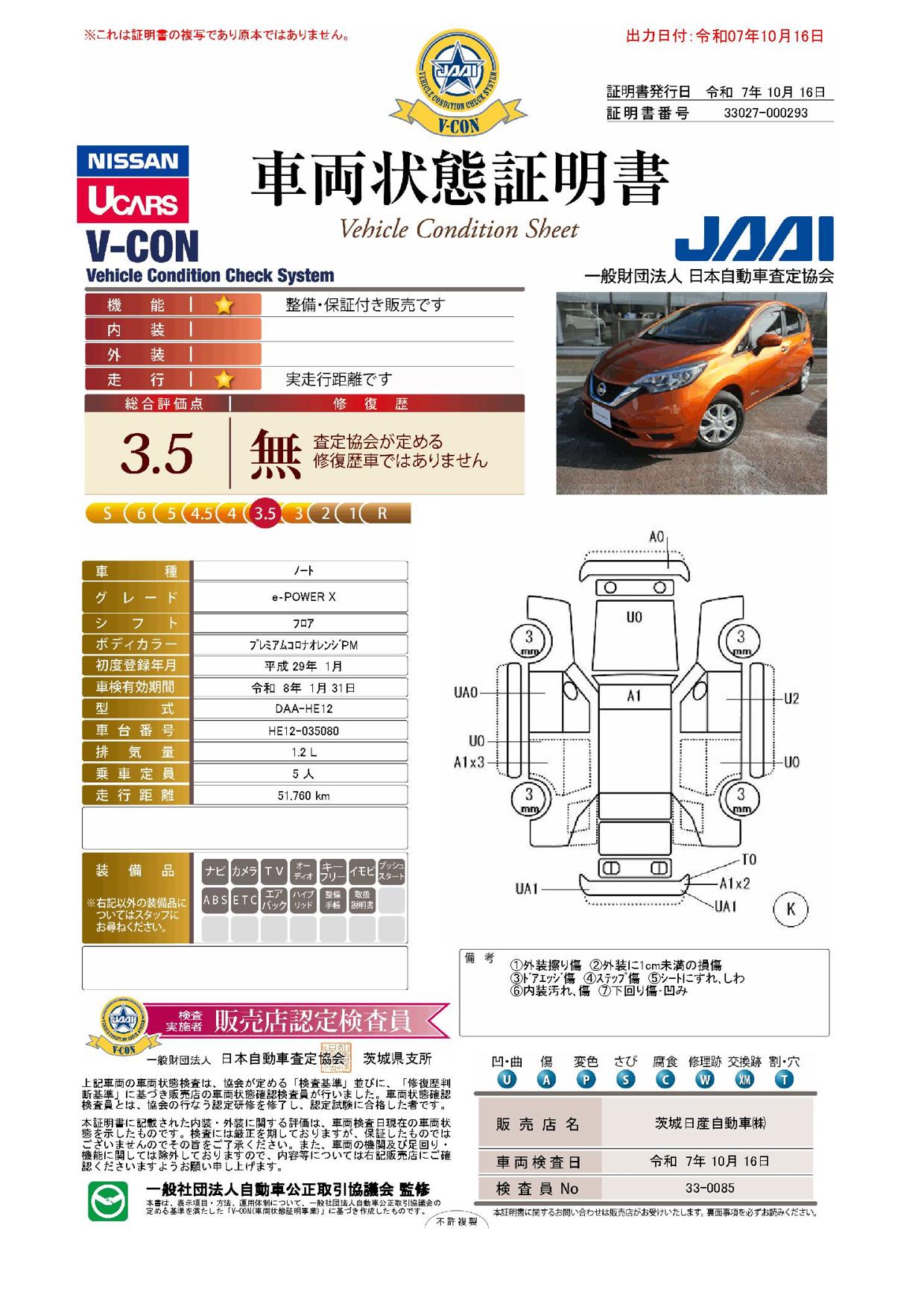 ノート 1200cc 1.2 e-POWER X 日産純正ナビゲーション バックカメラ エ