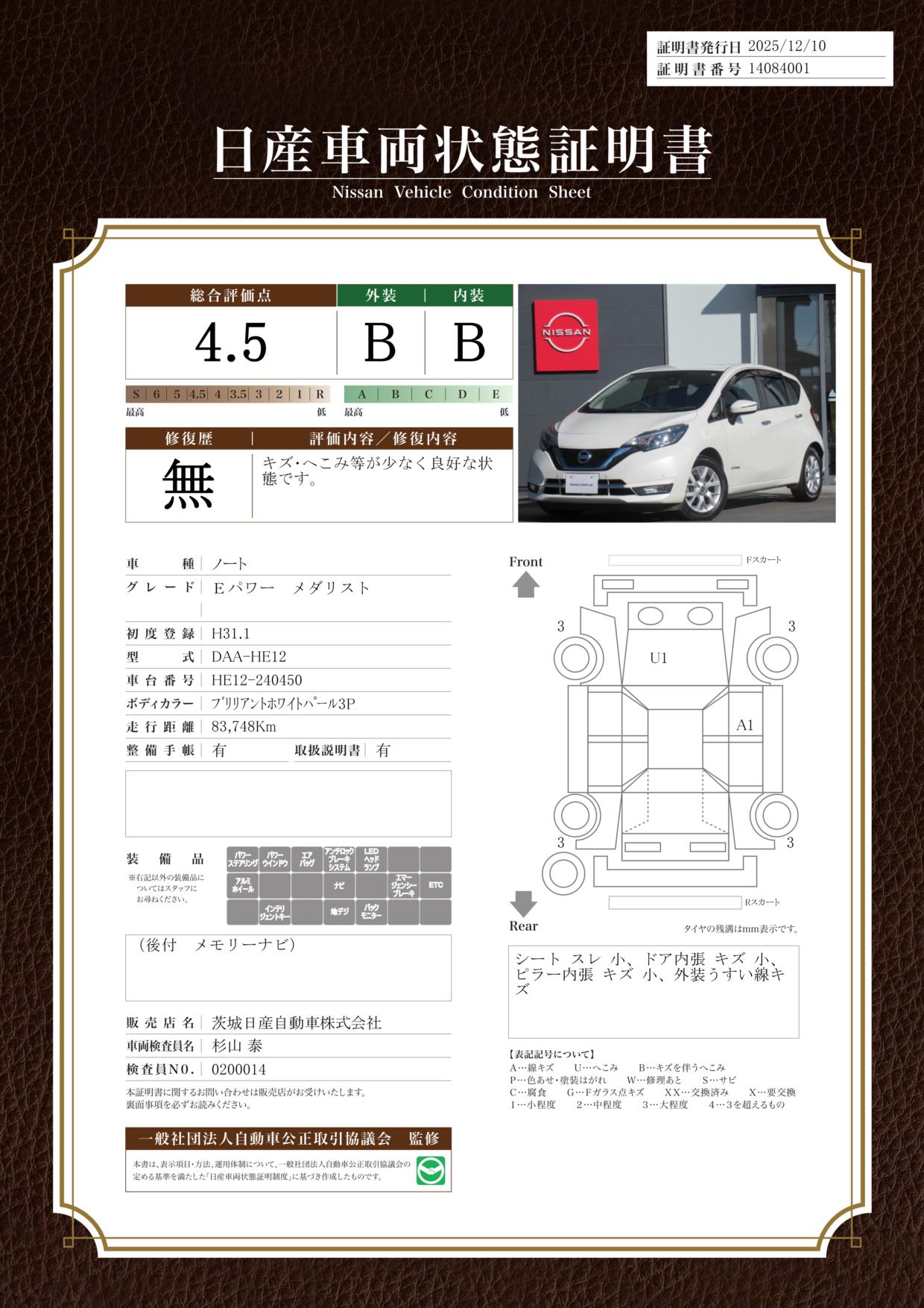 ノート 1200cc 1.2 e-POWER メダリスト 1年保証付き 純正ナビ バックカメラ