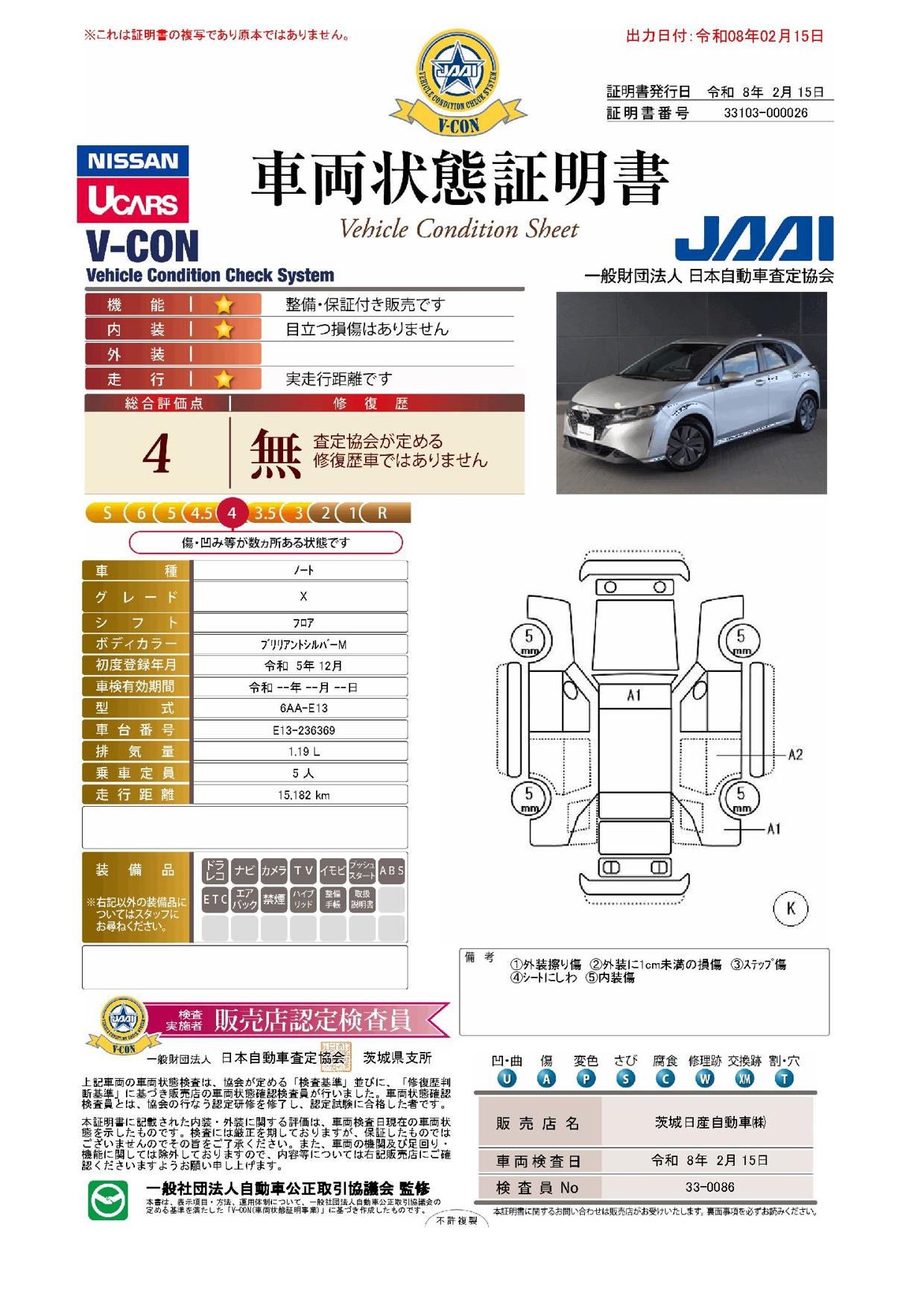 ノート 1200cc 1.2 e-POWER X 期・末・目・玉・車/純正ナビMM316D-L(フル