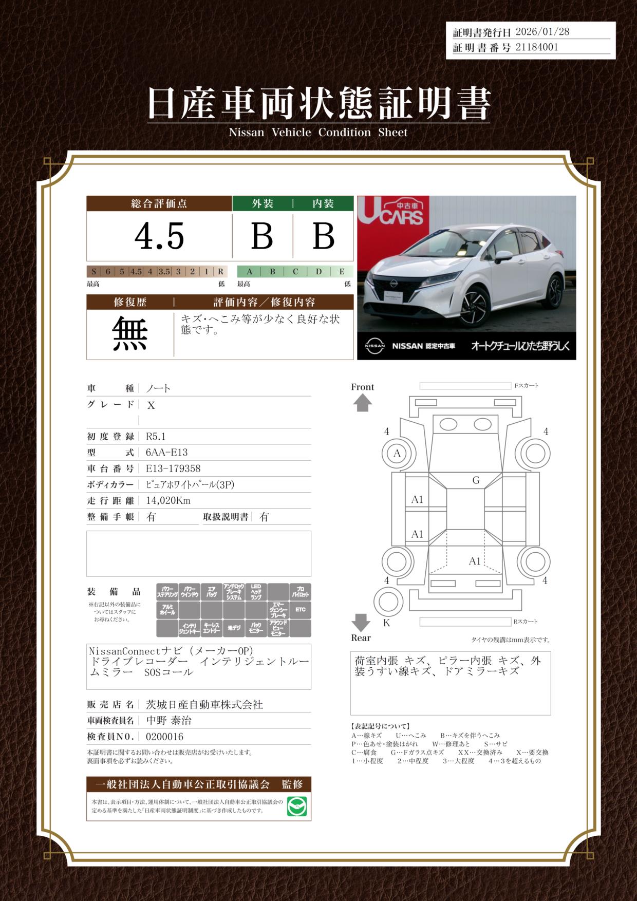 日産自動車認定の中古車販売店です。